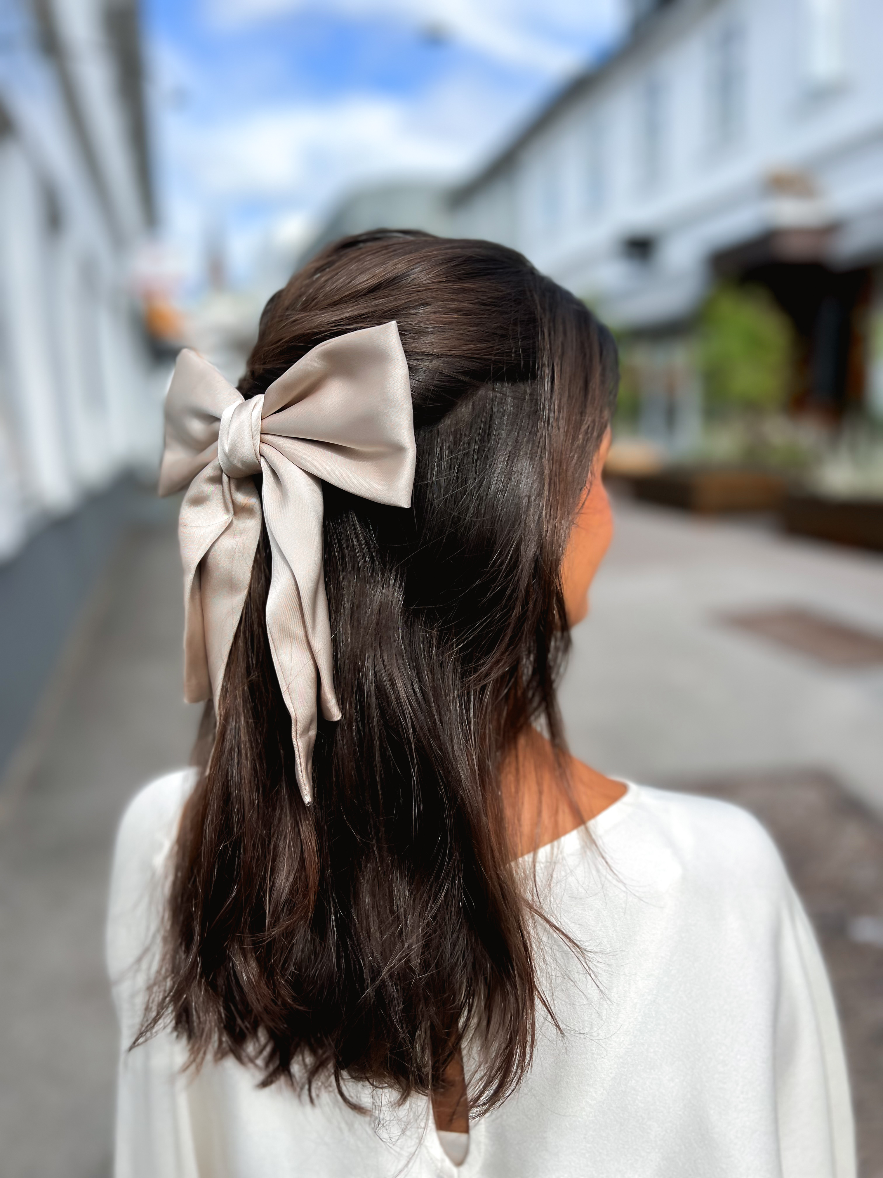 "Bella Satin Bow" fra Twist & tango. Legg en romantisk touch til frisyren din med vår Bella Satin Bow hårklemme. Laget av luksuriøs satin, er det den perfekte tilbehøret for å løfte ethvert utseende med en touch av sjarm og eleganse.