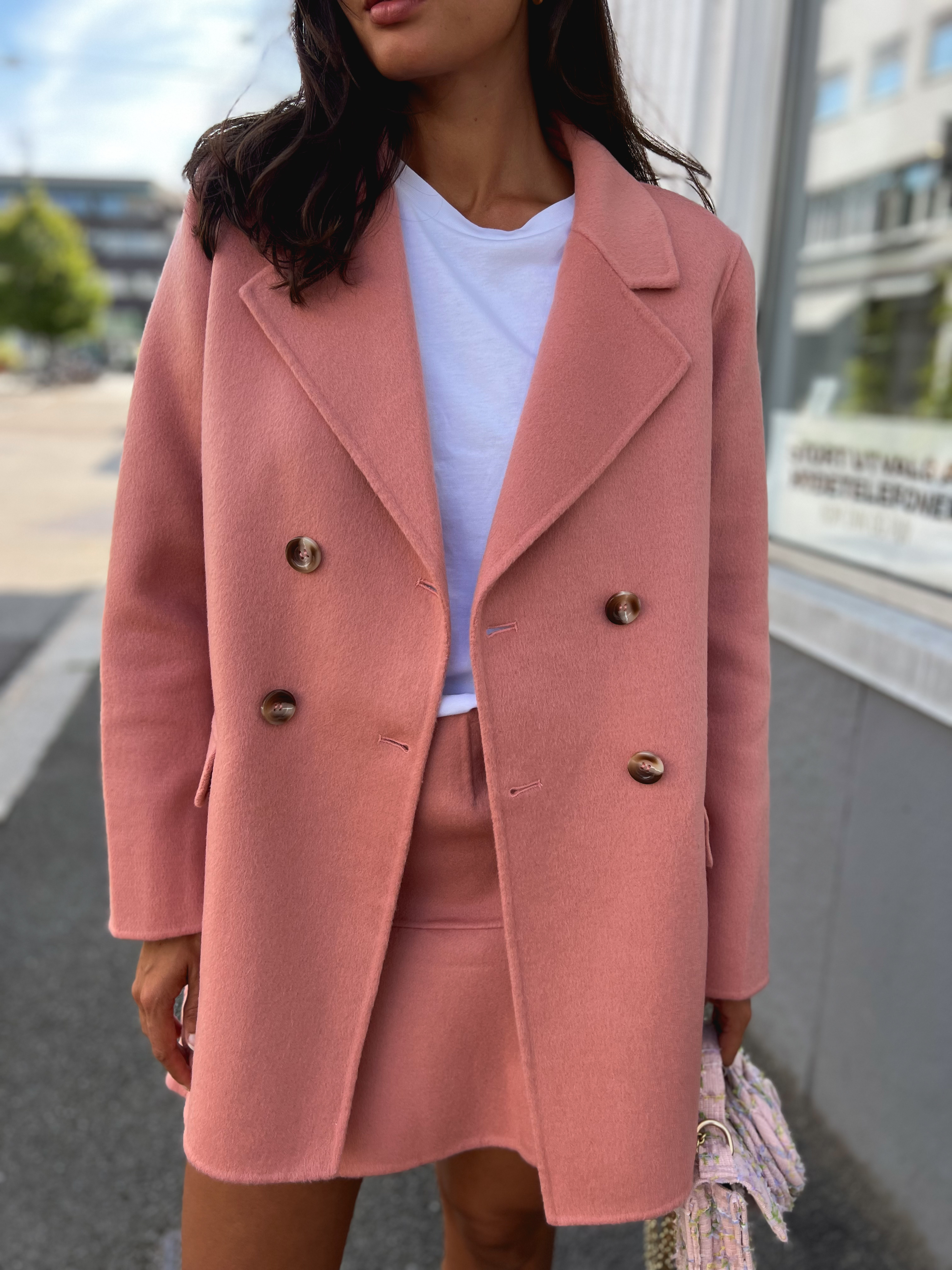 «Tailored blazer» fra byTiMo. Lekker blazer i «dusty pink». Blazeren har krage, lang erm og lukkes med knapper. Splitt bak.