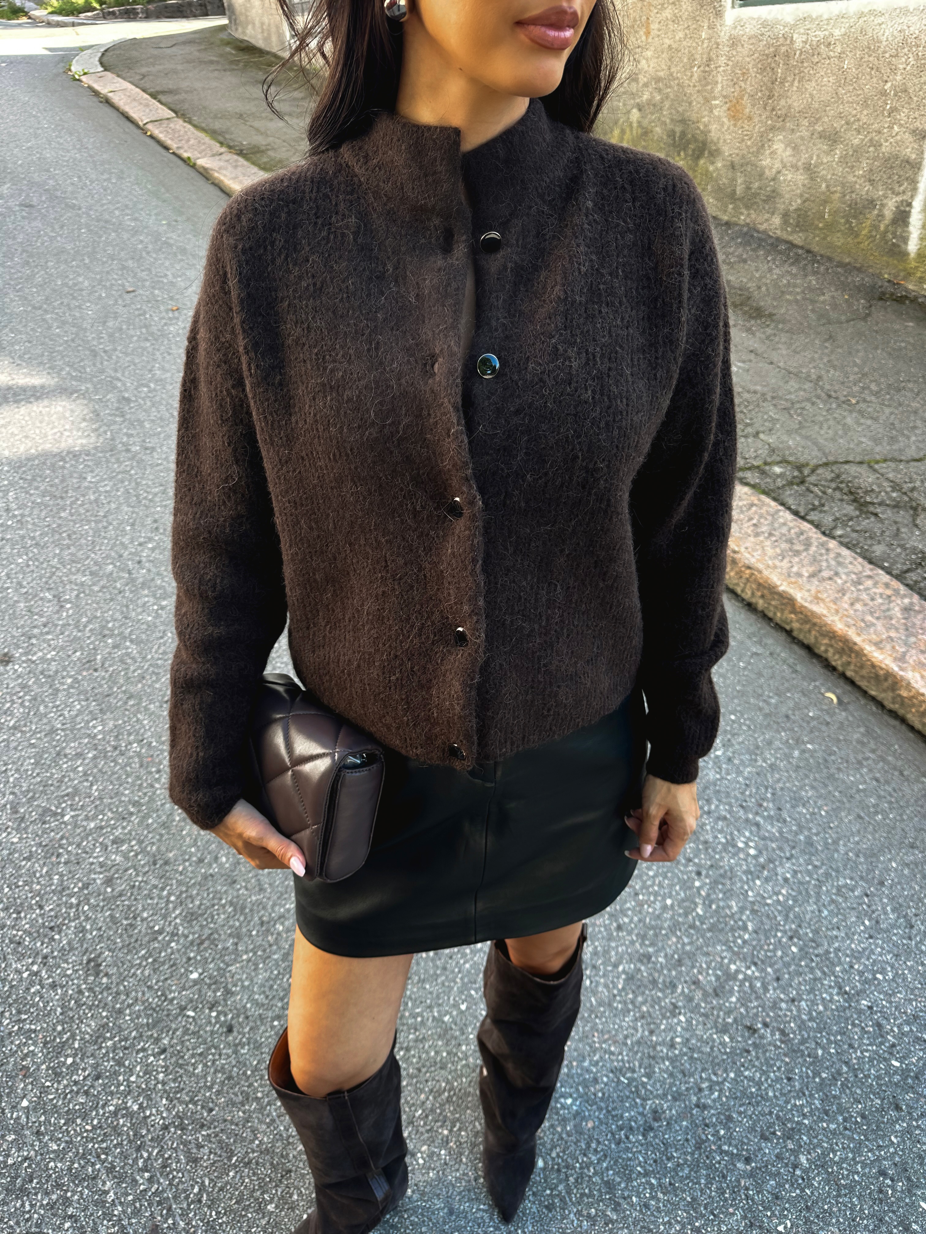 «Alpha short cardigan» fra Gestuz er en nydelig kort cardigan med lekre knepping foran. Loose fit. Normal i størrelsen.