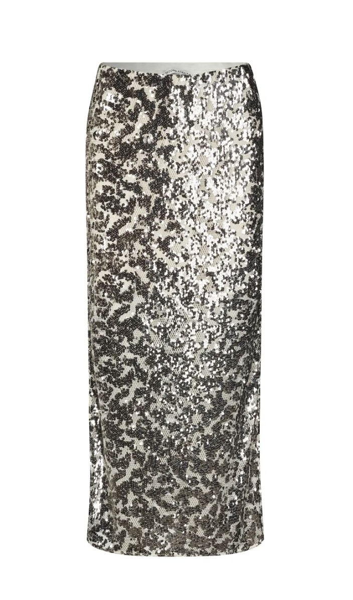 «Pailey skirt» fra Second Female. Rålekker midi-skjørt med paljetter. Høy midje og tettsittende i fasongen.