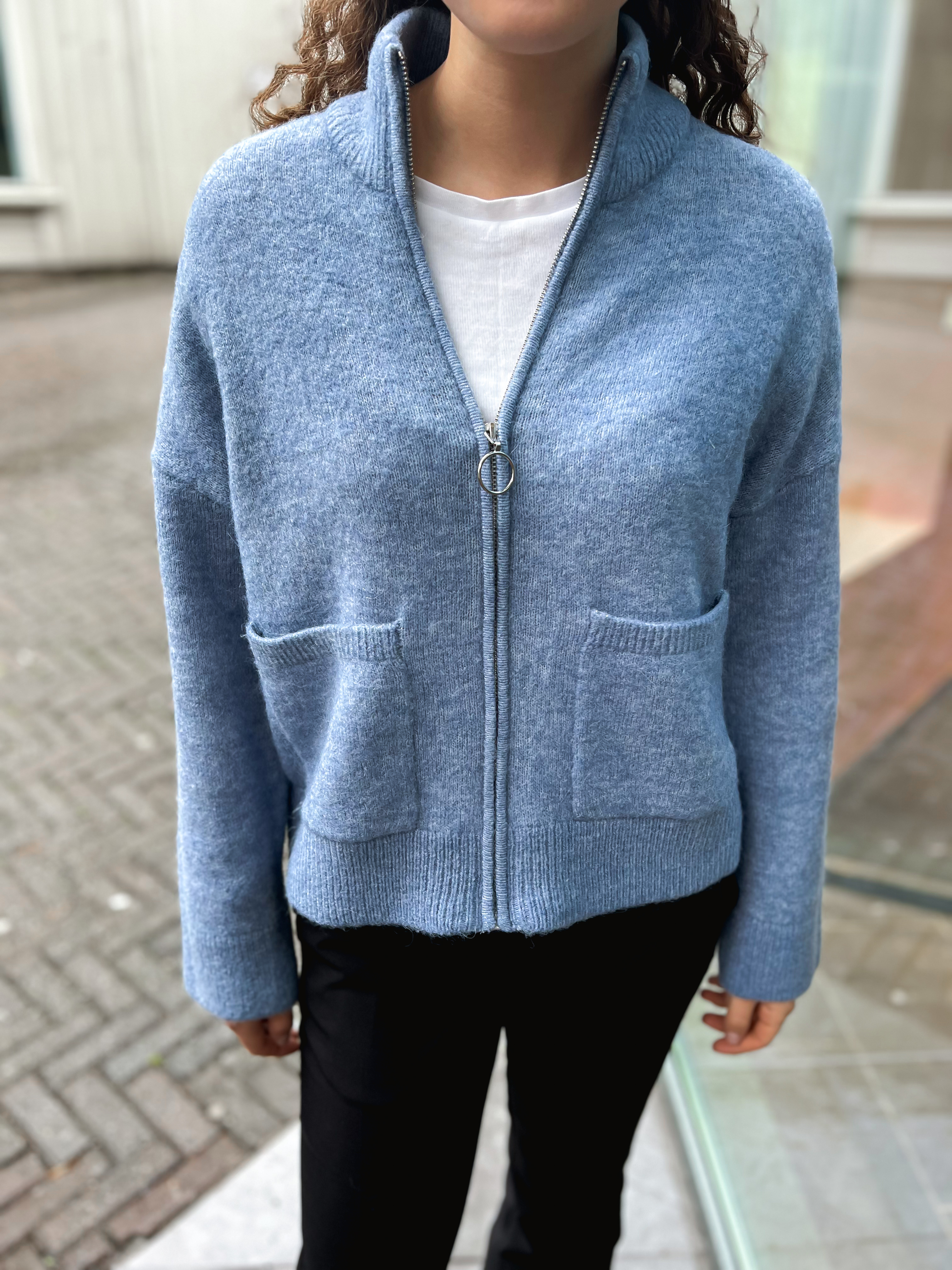 Sia Ras Knit Zipper Cardigan - Endless Sky/Melange