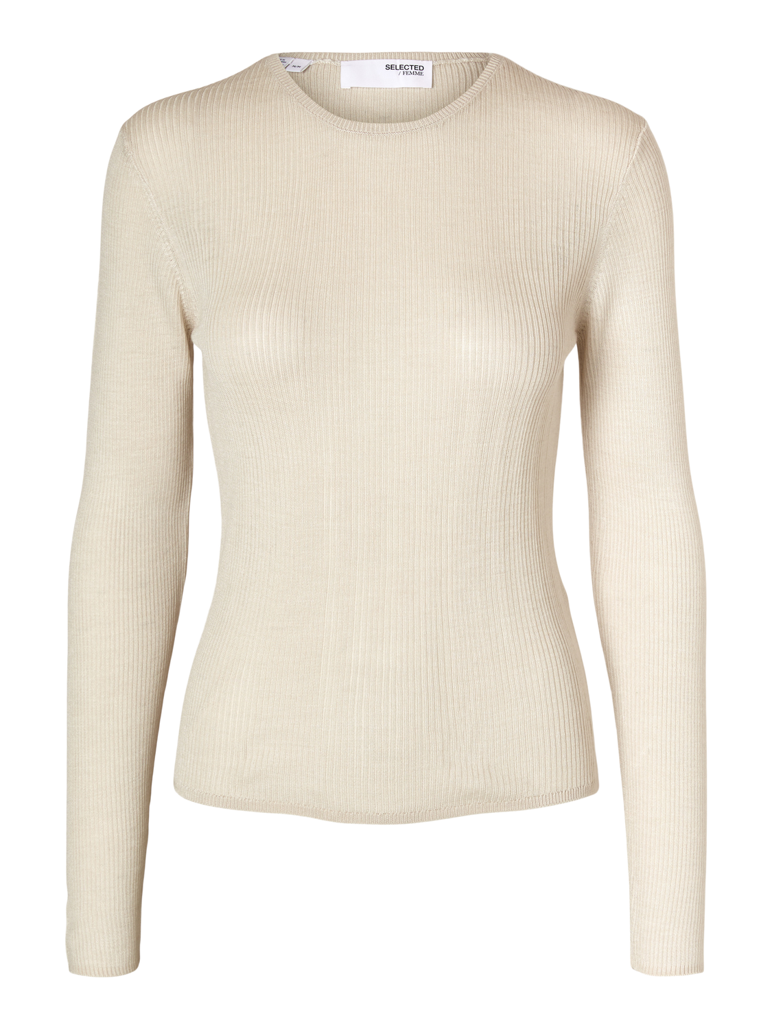 Naja Ls Knit O-Neck fra Selected Femme. Minimalistisk, langermet topp fra Selected Femme i ullblanding. Naja Ls Knit O-Neck har lange, smale ermer og smal passform som gjør den ideell under en blazer eller cardigan.