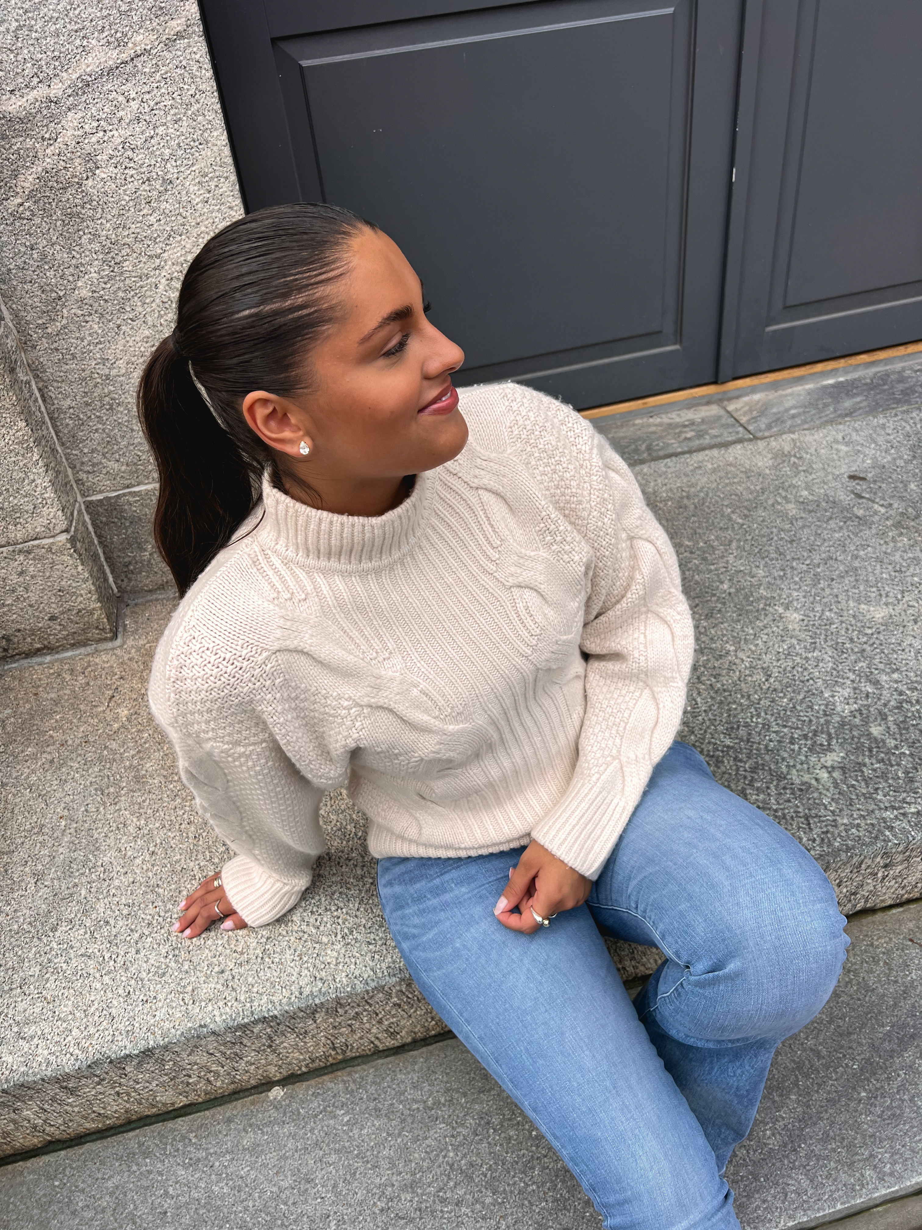 «Wool turtleneck» fra byTiMo er en nydelig høyhalset strikkegenser i deilig Kashmir og ullblaning. Genseren har vakre strikke-detaljer.