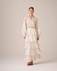 Blusen har en avslappet passform, skjortekrage, knapper foran og lett senkede skuldre med voluminøse ermer og stramme mansjetter. Med mye bevegelse kan du kombinere det med Devoré-skjørtet for en sofistikert stil, eller Classique-skjørtet for en elegant hverdagsstyling.