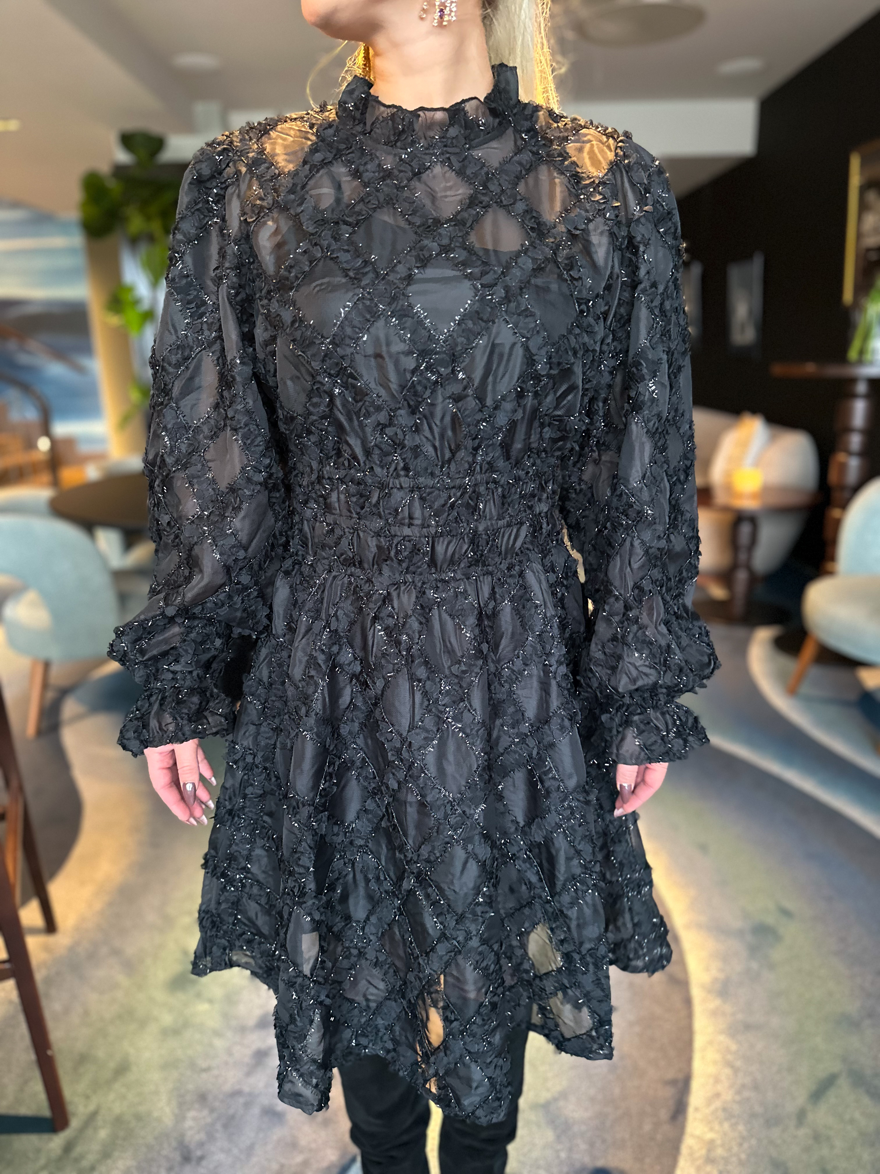 «Harlie dress» fra YAS er en vakker sort kjole med rund hals og ballongermer. A-formet skjørt.