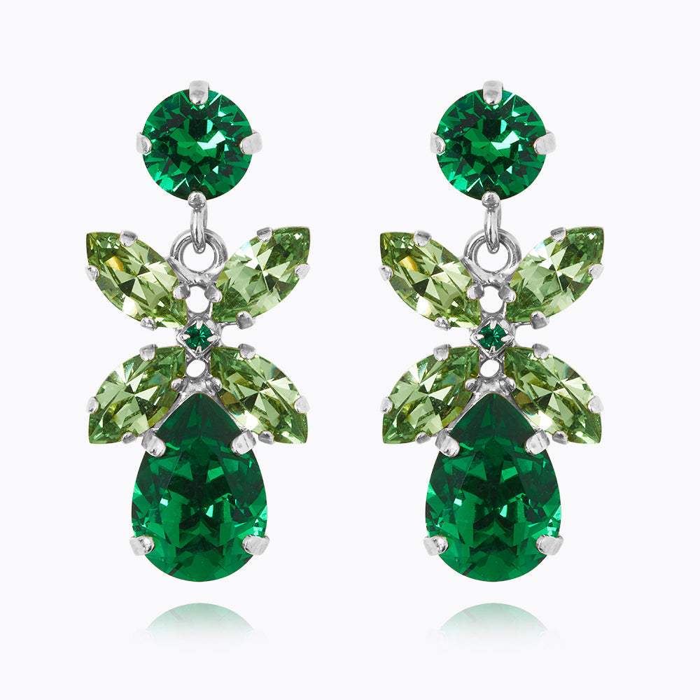 Mini Dione Earrings Rhodium - Majestic Green Combo