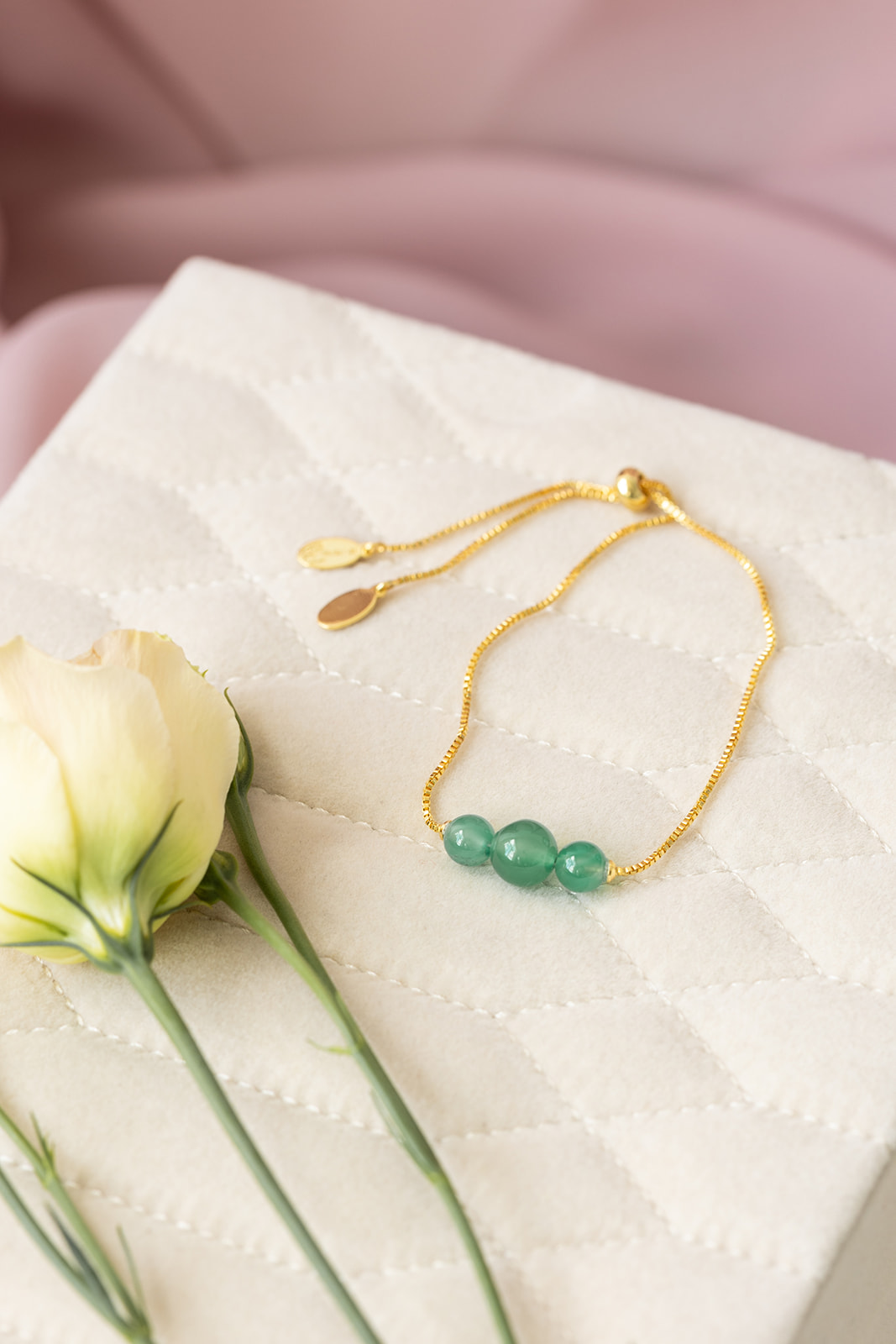 Chrysoprase hjelper deg å rette oppmerksomheten mot positive hendelser. Dette vakre armbåndet kan være med på å gi deg en følelse av trygghet og støtter uavhengighet. Et must i smykkeskrinet som vi elsker!
