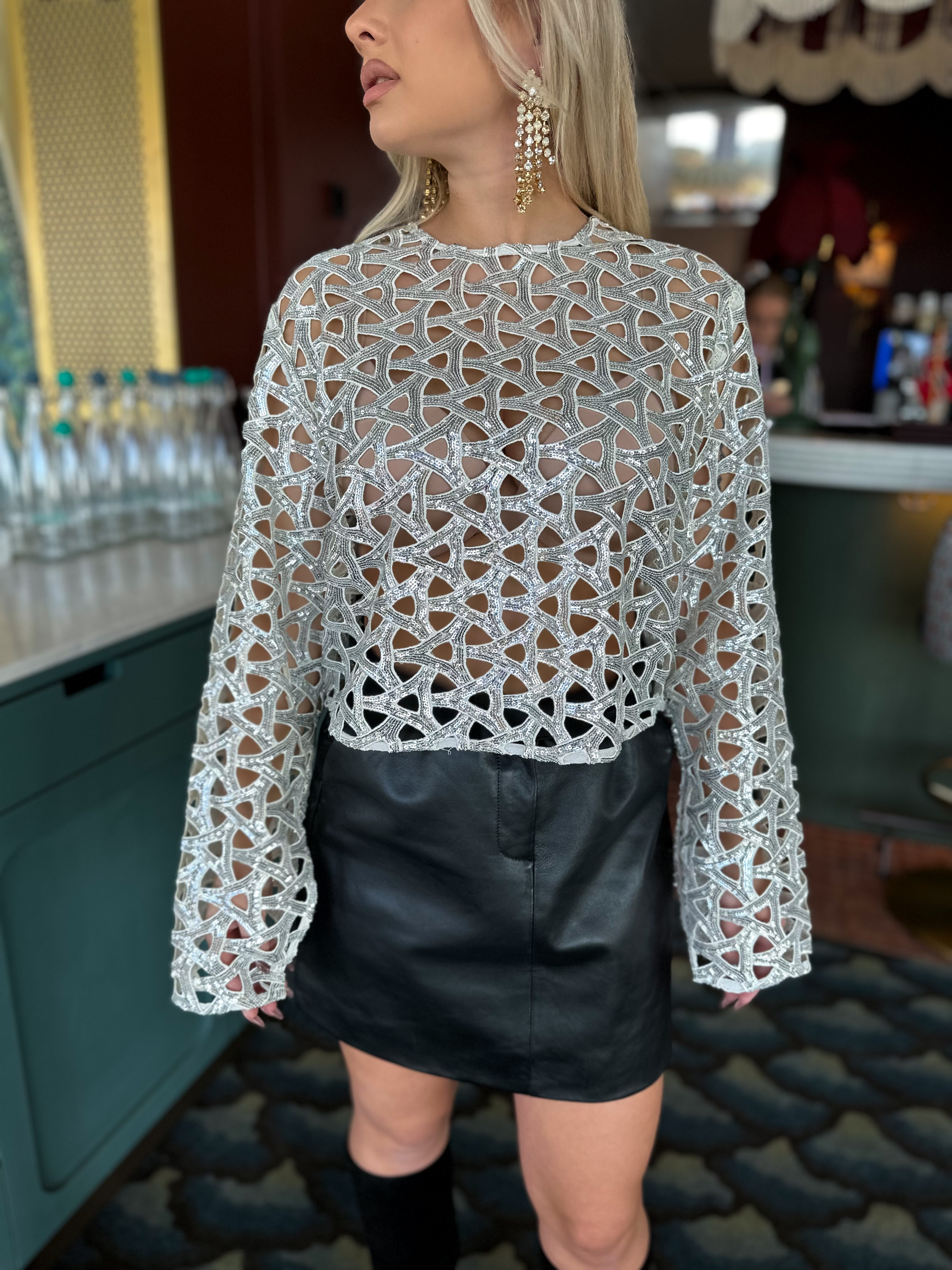 Denne eksklusive blusen i silvershine har de mest imponerende detaljer som gir et ekstraordinært blikkfang. Amelia Blouse er den perfekte toppen for sesongens mange arrangementer, enten det er fest eller en spesiell anledning. Den glitrende overflaten gir antrekket et moderne og iøynefallende preg som gjør at du skiller deg ut i mengden.
