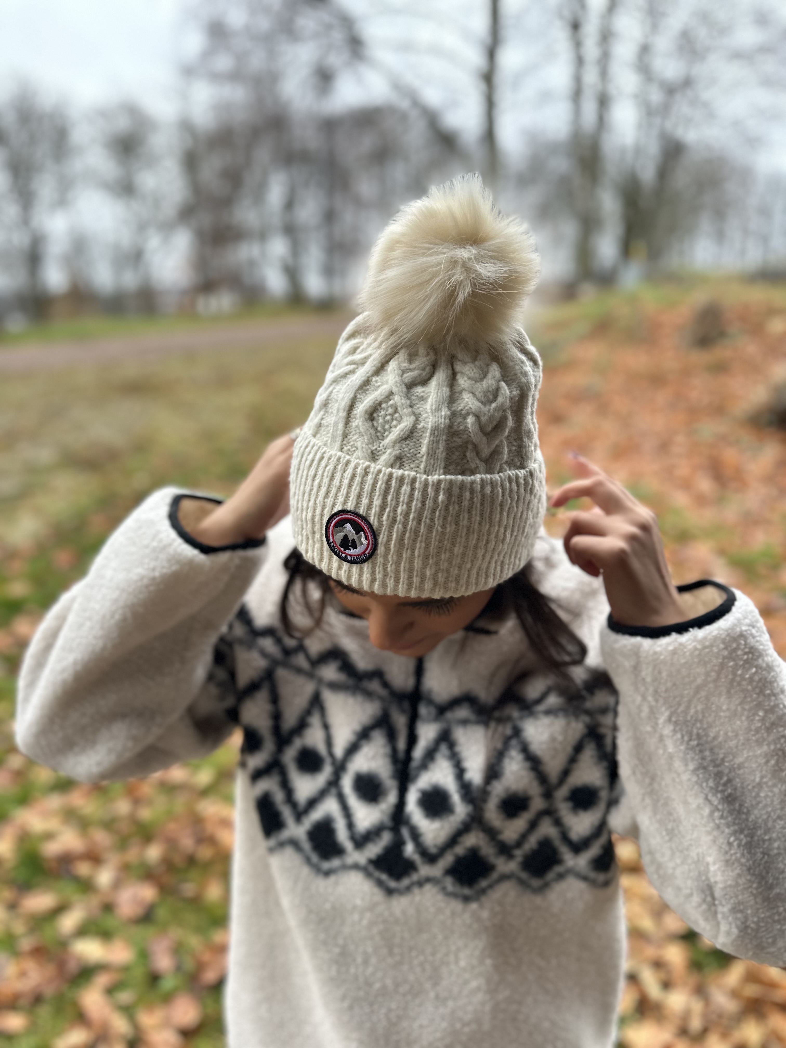 "Avoriaz Cable-Knit Beanie" fra Twist&tango. Hold deg varm og stilig med Avoriaz Beanie. Denne luen har et koselig kabelstrikket design i bouclé-garn og en myk ullblanding. Perfekt for kalde dager!