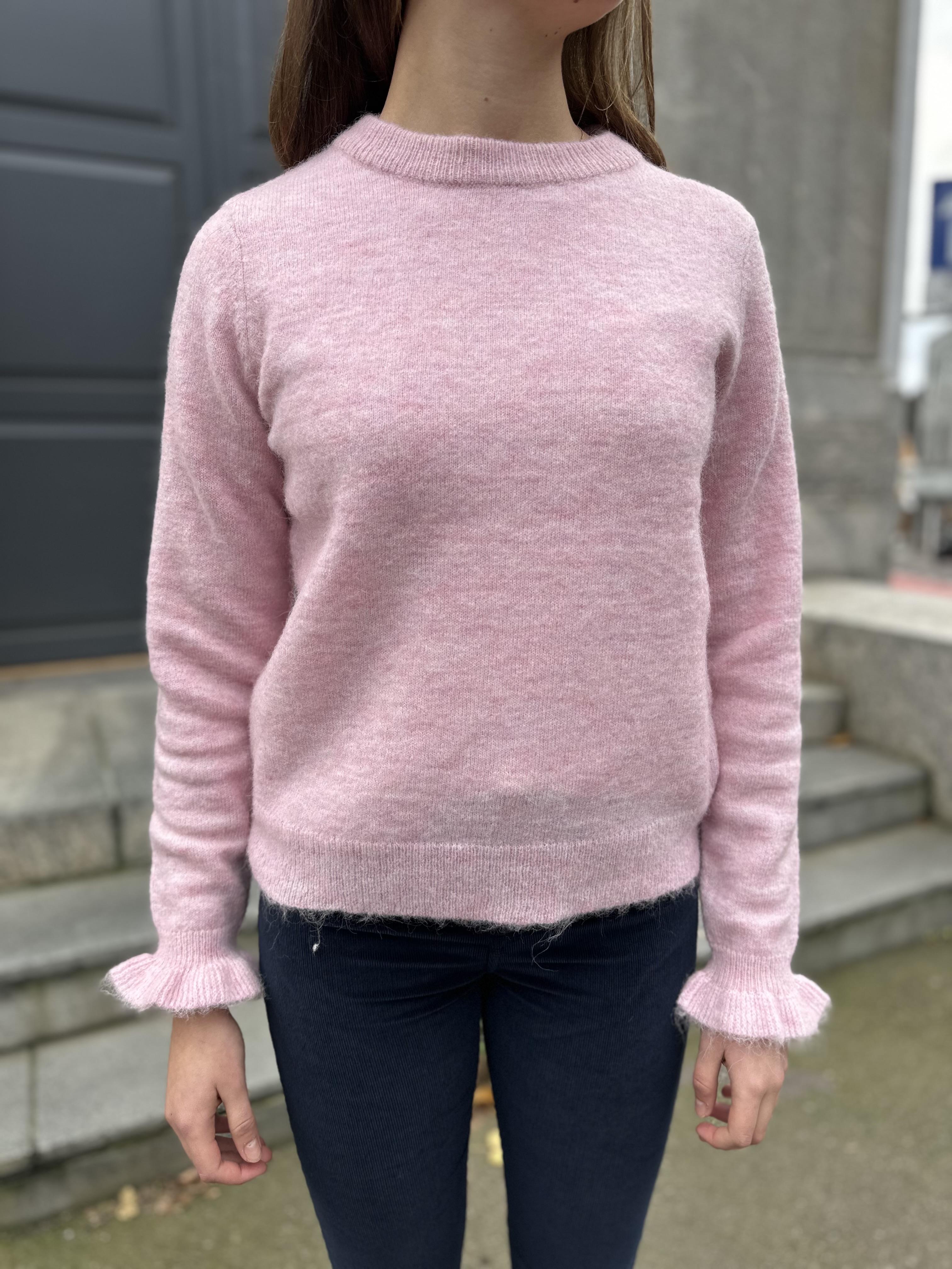 Lulu Knit Frill Cuff O-Neck - Bleached Mauve