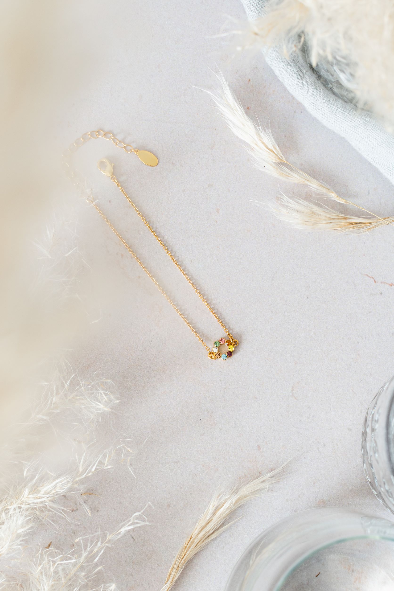 Enkelt og vakkert armbånd. Små swarovskistener former en skjønn liten blomst. Armbåndet har en justeringslenke på 5 cm som gjør at det passer alle.