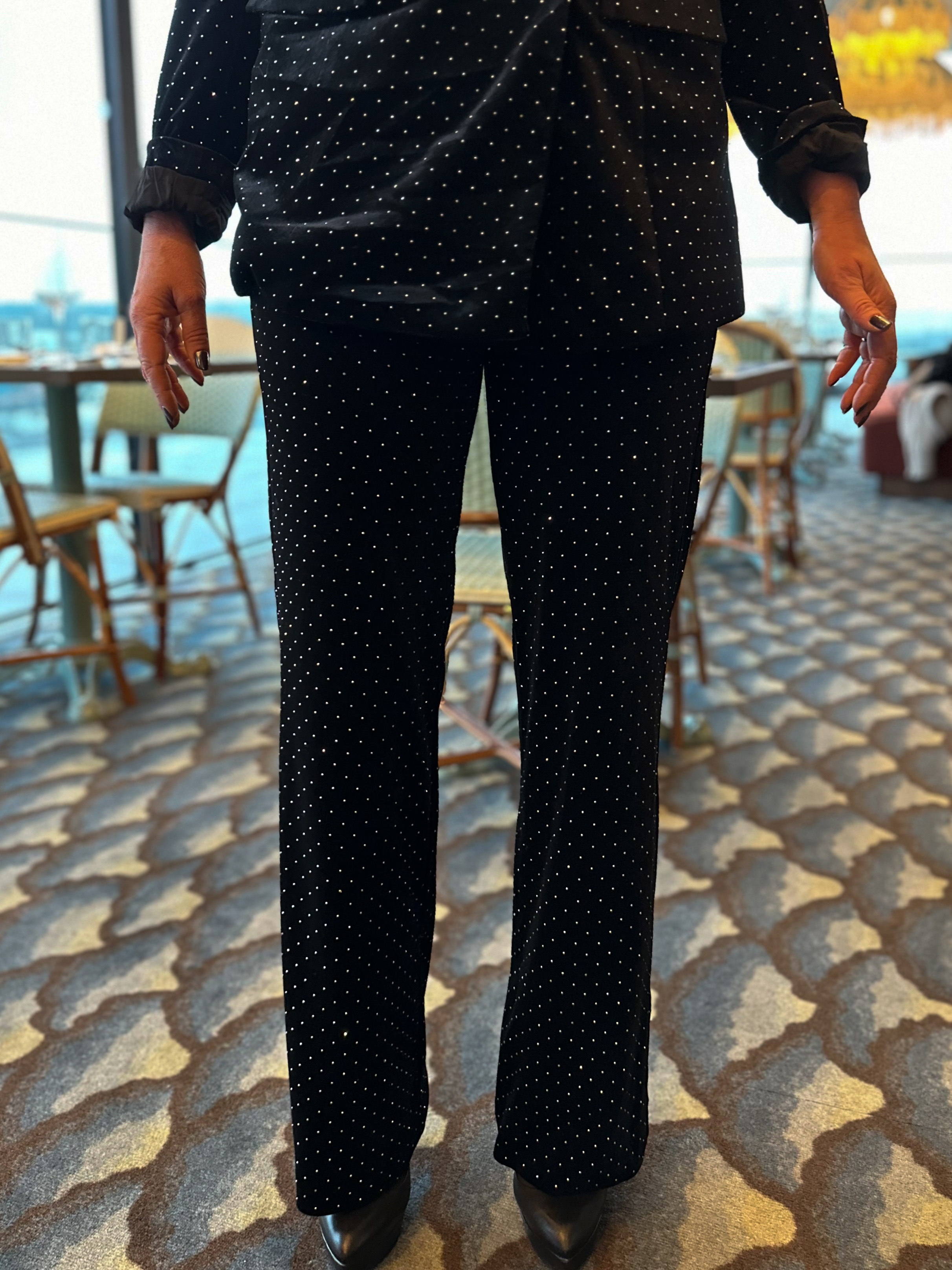 «Hella Velour Pant» er en lekker bukse fra YAS i velur og har sølvsteiner. Matchende Blazer finnes, perfekt til fest!