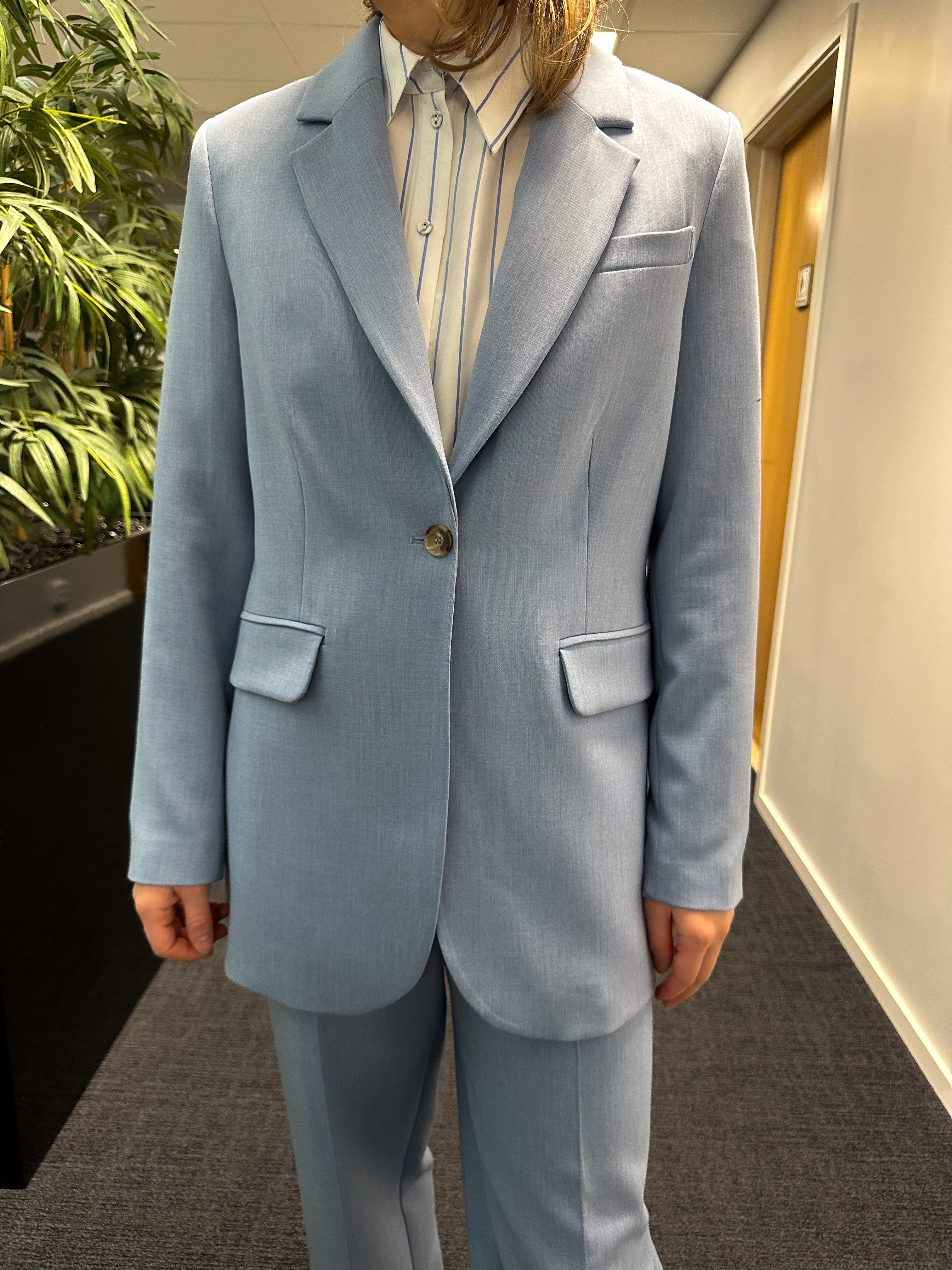 "Rita-Freia Long Blazer" fra Selected Femme er elegant blazer i en vakker lyseblå farge med melert look fra Selected Femme. Blazeren har en casual passform, er en lang modell og åpnes og lukkes med én knapp i midten. Kvaliteten er den velkjente og populære Rita-kvaliteten, som består av resirkulert polyester, viskose og litt elastan for en behagelig passform.