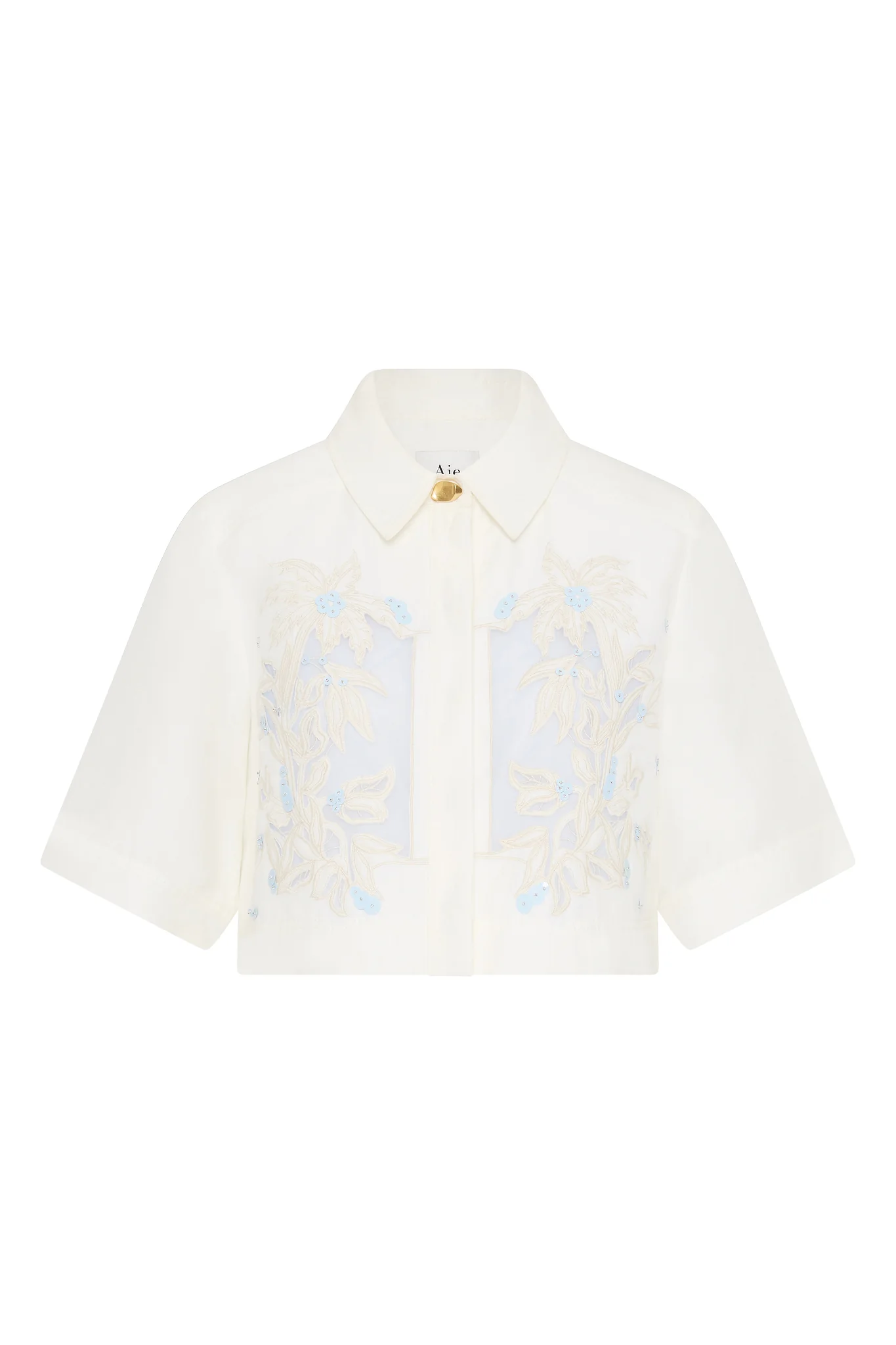 «Mirrors Embroidered Shirt» fra AJE. Kortermet skjorte med boxy passform og broderte detaljer på forsiden.