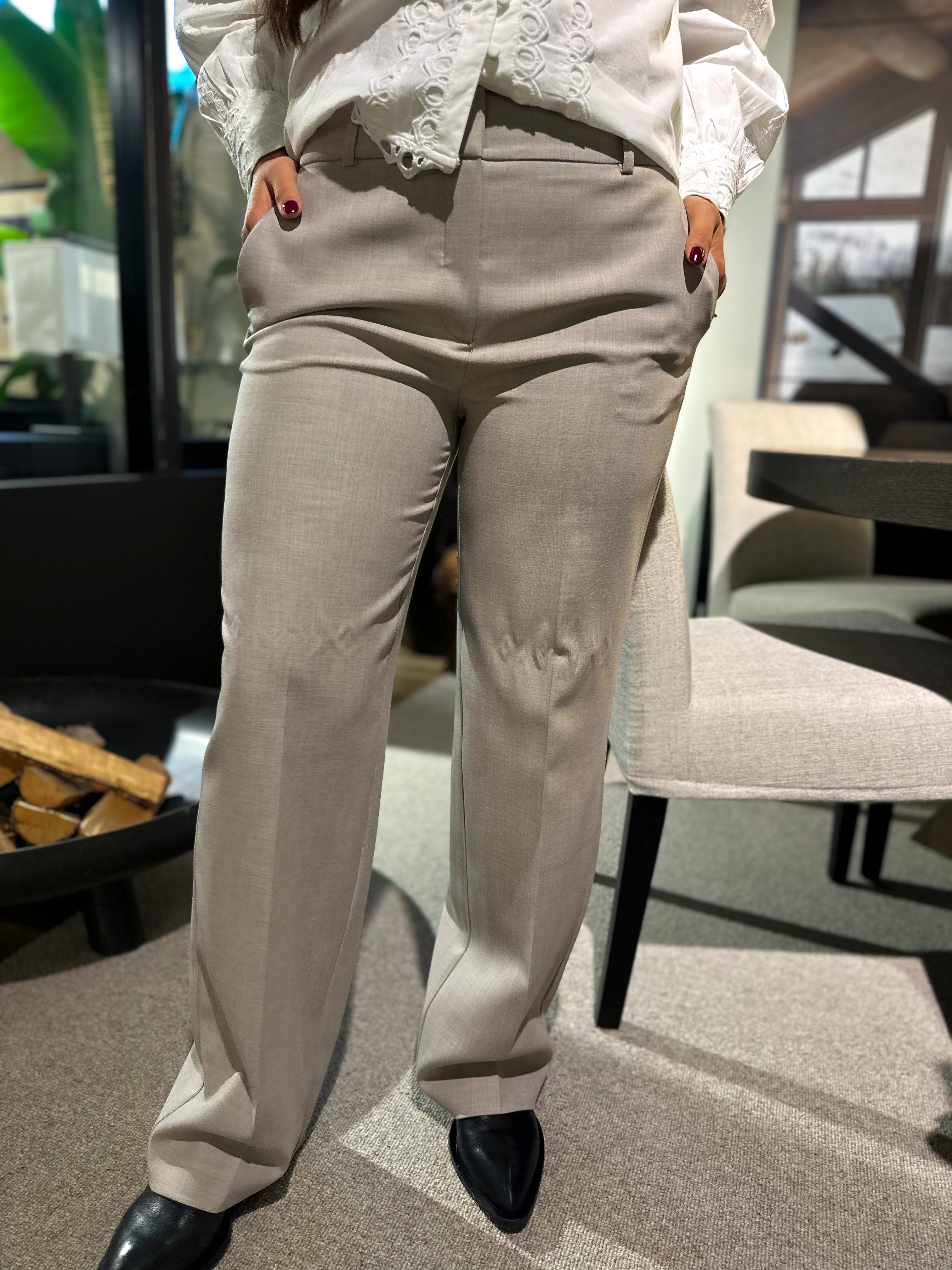 "Rita wide pant" fra Selected Femme er en klassisk sort dressbukse som passer til alt. Kan pyntes med en lekker bluse eller like fint med en strikkegenser. Den sitter over rumpe og lår, mens den er løs i beina. Buksen har to lommer foran og har beltestropper.
