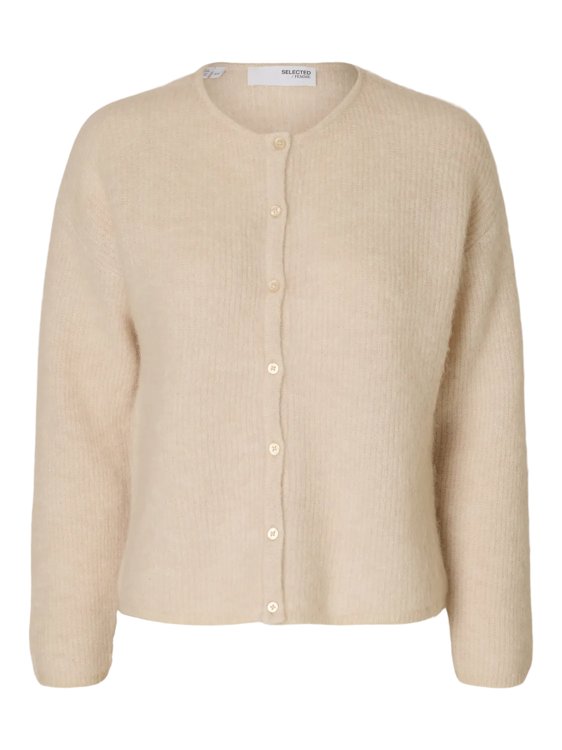 "Sia Ras Ls Knit O-Neck Cardigan" fra Selected Femme. Pakk deg inn i et herlig mykt strikkeplagg, som denne cardiganen i ull. Den er laget av sertifisert ull og sertifisert alpakkaullfibre, noe som gjør den ekstremt myk og varm.