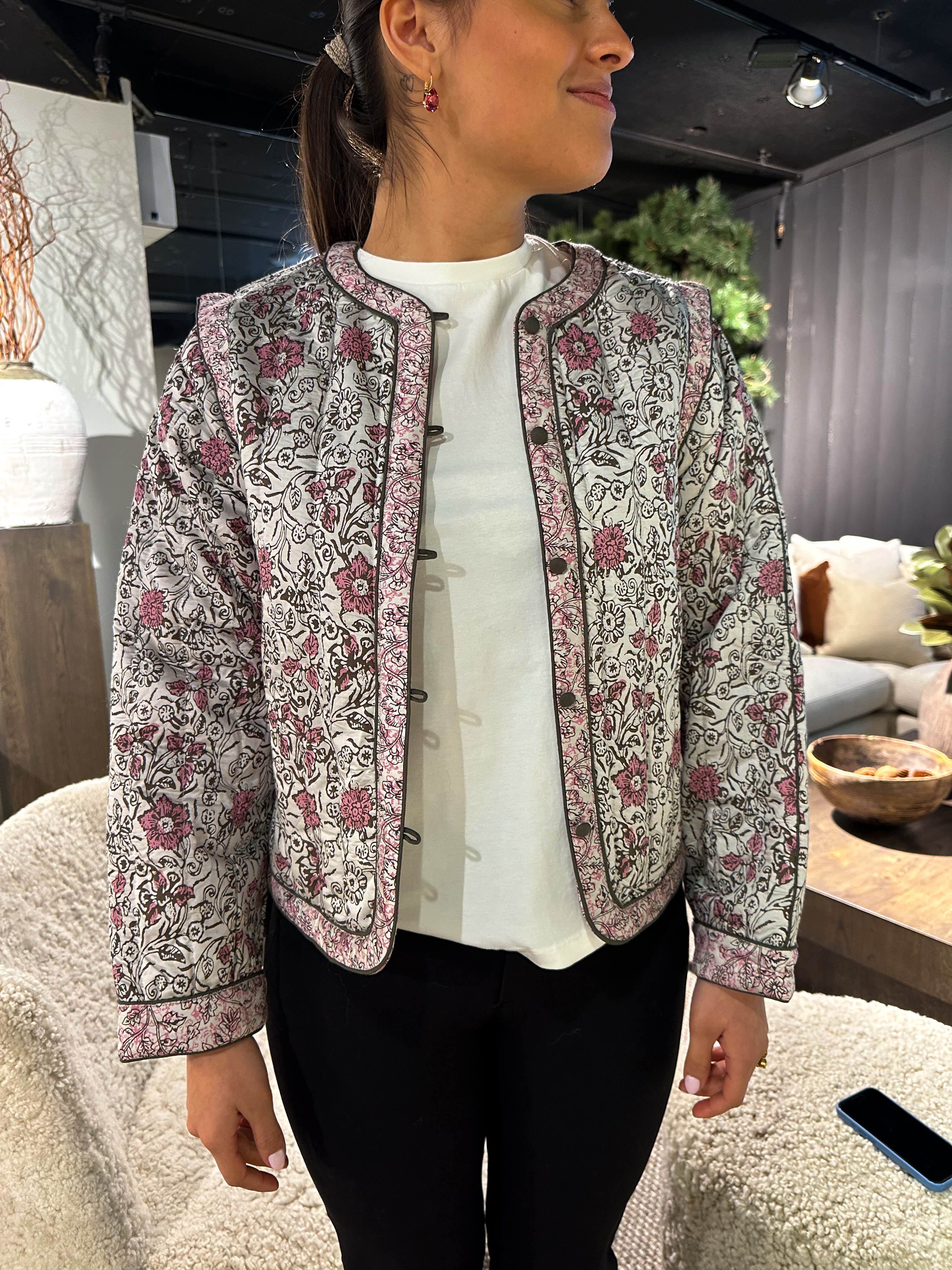 "Paula Padded Jacket" fra Yas er en nydelig padded jakke med blomster print og O-hals.