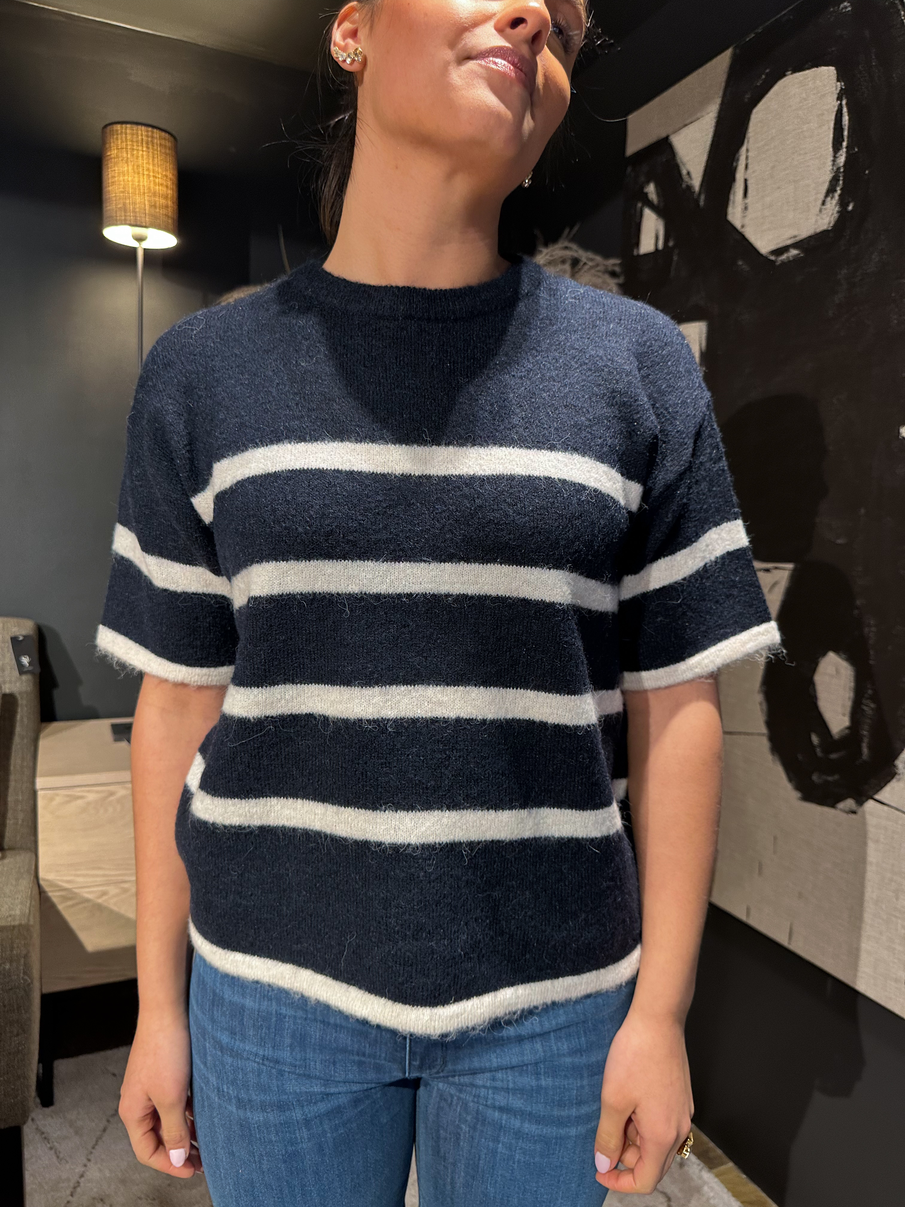 Maline-Liliana 2/4 Knit O-Neck - Dark Sapphire/Brich