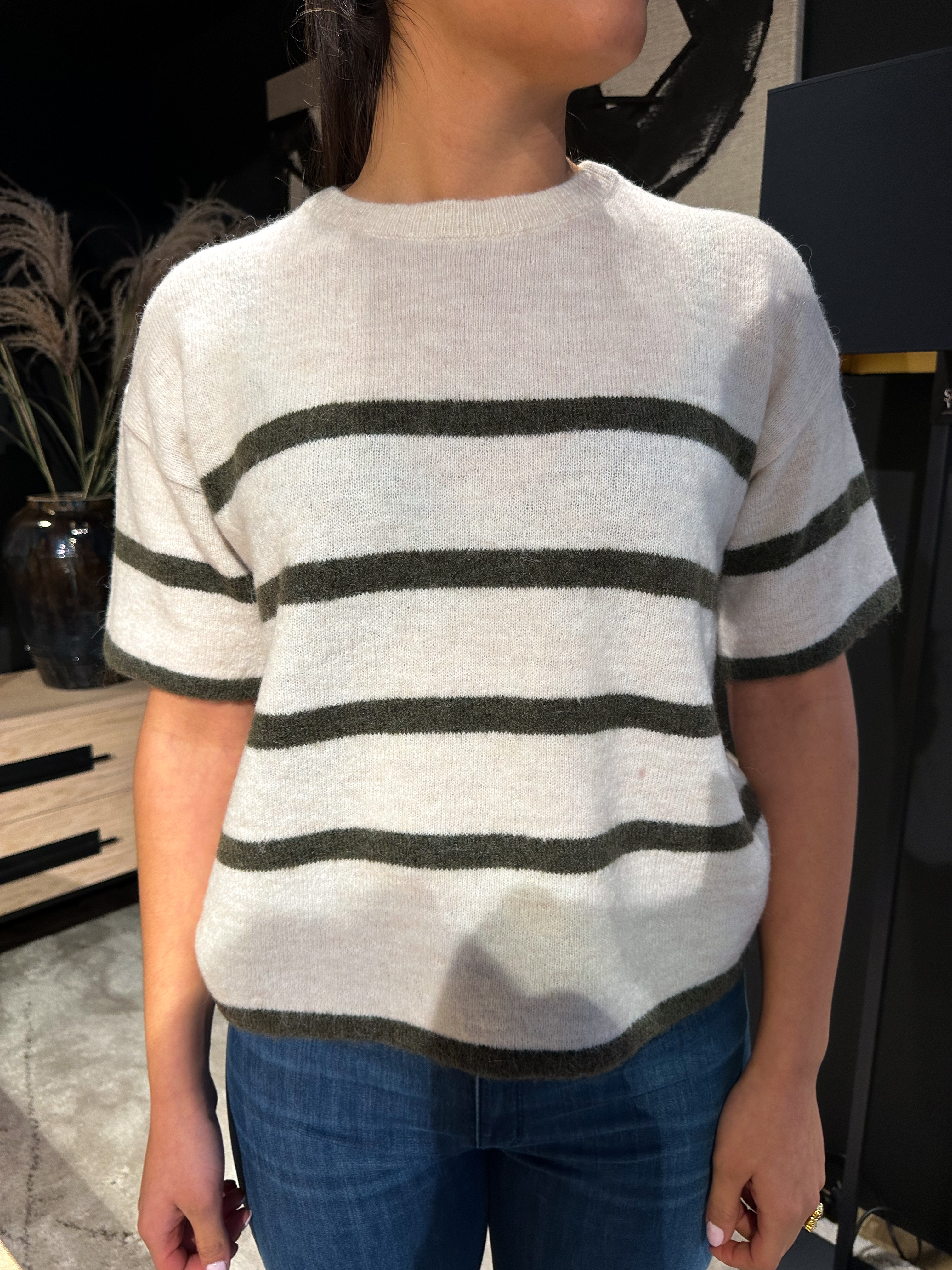 Maline-Liliana 2/4 Knit O-Neck - Birch/Kalamata