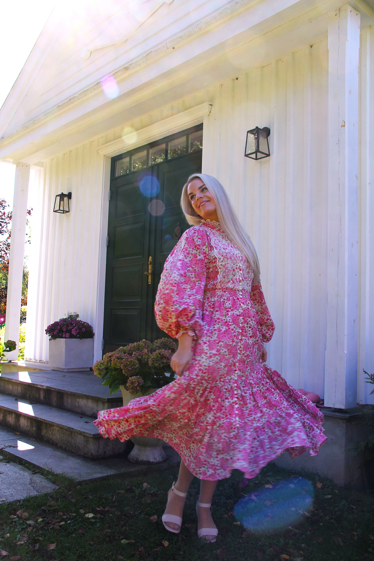 "Cotton Slub Midi Dress" fra byTiMo. En nydelig midikjole fra byTiMo. Cotton Slub Midi Dress er kuttet i byTiMos lette og myke bomull- og viskoseblanding med slubdetaljer i stoffet. Den har en minilengde og definert, smocket midje. Kjolen har oversizede, vintage-inspirerte, korte ermer og er satt inn med broderie anglaise detaljer på brystet, ermene, mansjettene og halsen. Cotton Slub Midi Dress har et elegant midiskjørt med volum, knappelukking i front og knytebelte i livet.