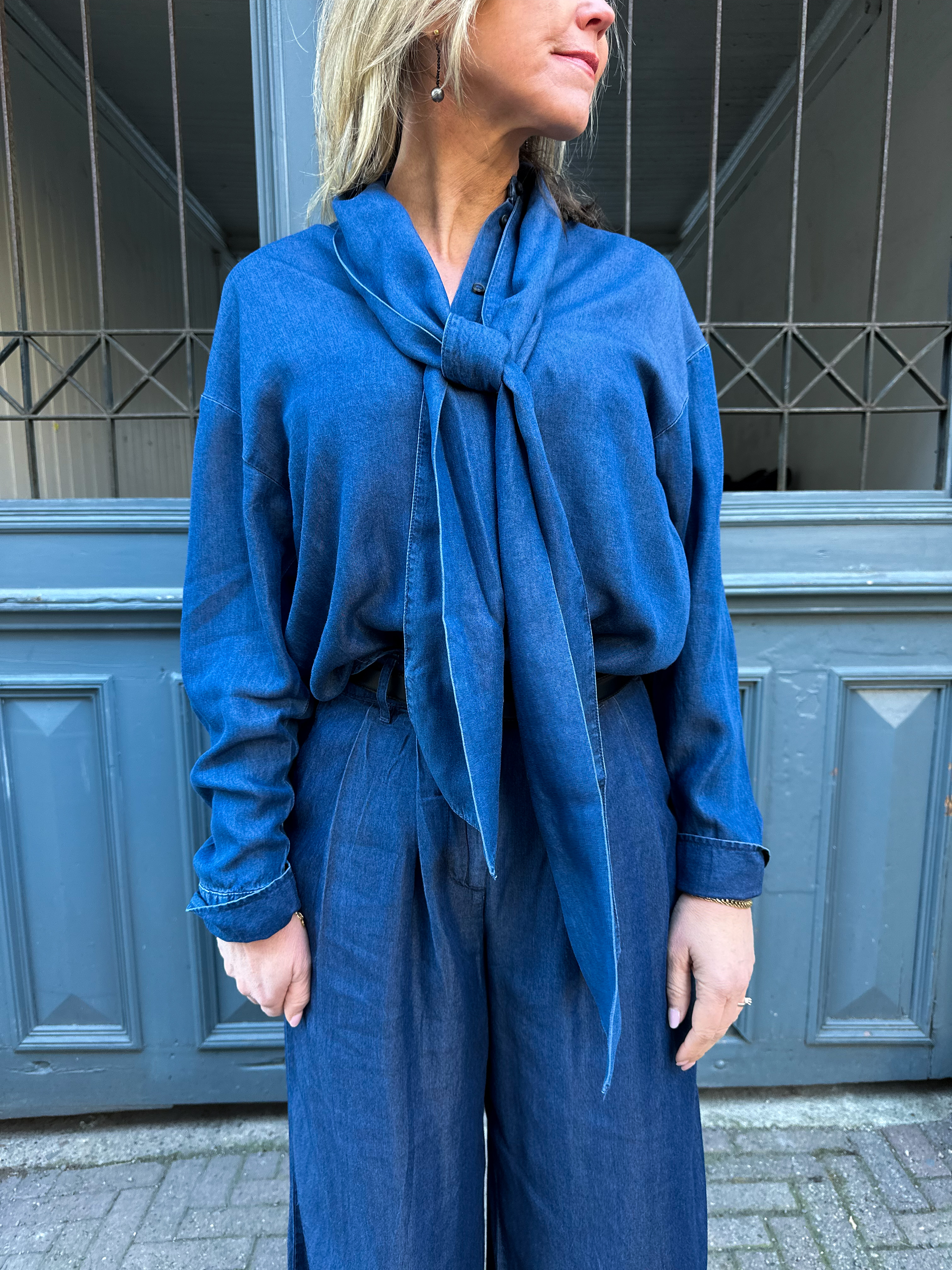"Janna Relaxed Chambray Shirt" fra Selected Femme er en stilig bluse med knyting i halsen i myk tencel-kvalitet fra Selected Femme. Få en komplett look med Janna Pleated Chambray Pant.