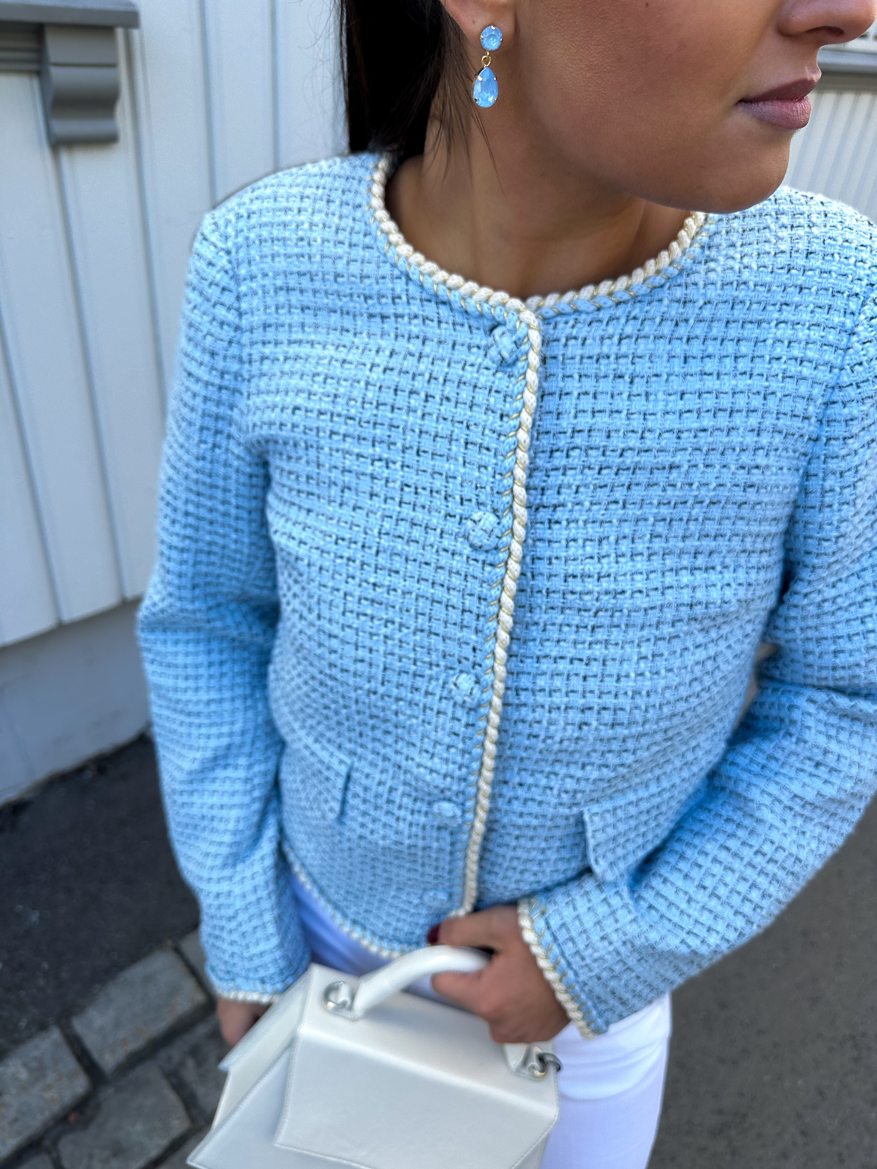 "Clara" Ls Jacket fra Y.A.S. Elegant og trendy kort jakke fra Y.A.S. clara Ls Jacket har en rett passform med rund hals, lange ermer, knappelukking og lommer i front. Jakken har et diskret rutete mønster med kontrasterende detaljer langs sømmene. Superfin som overdel eller som jakke når temperaturen tillater det.