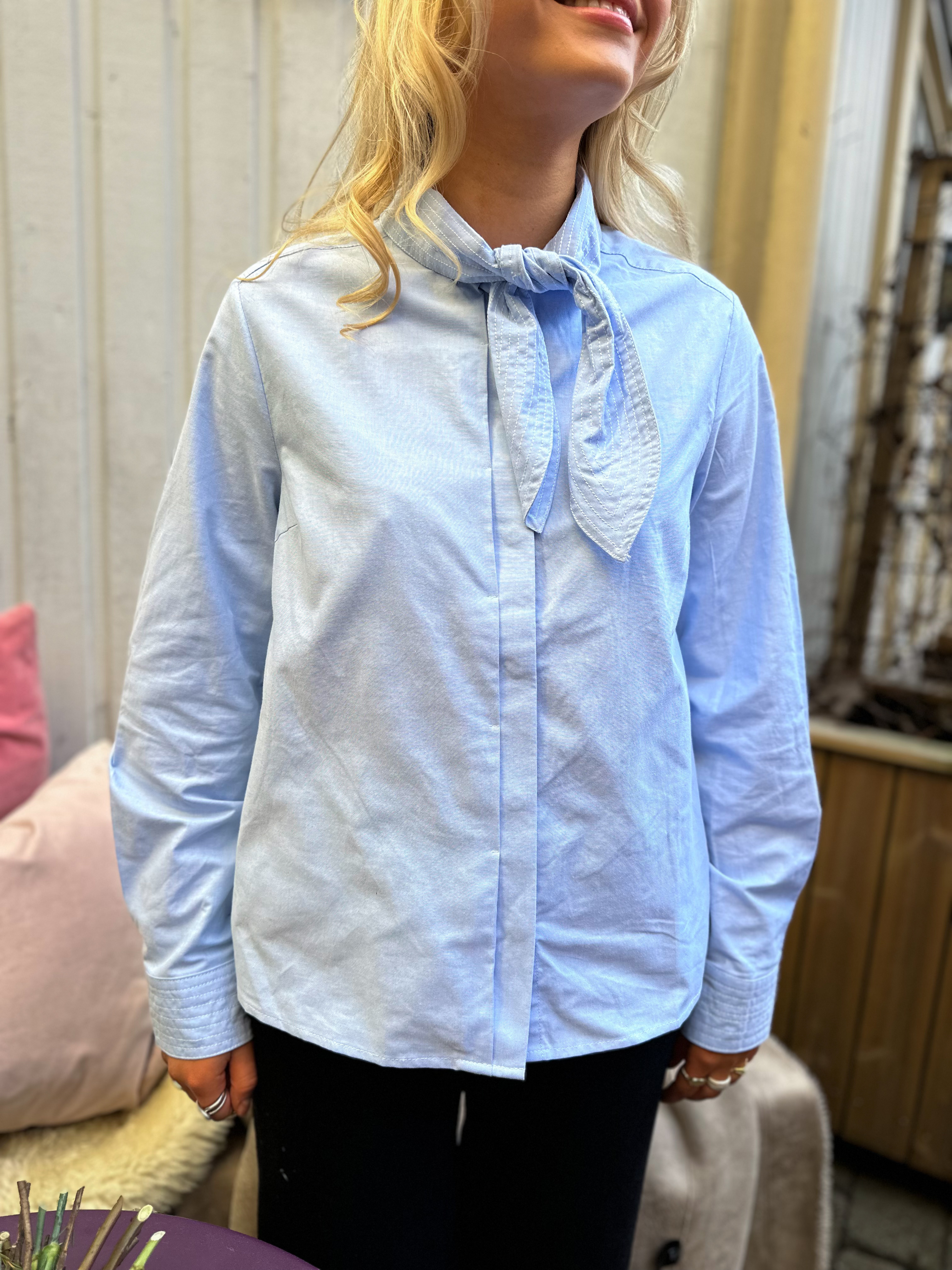 Oxa Tie Neck Shirt - Clear Sky