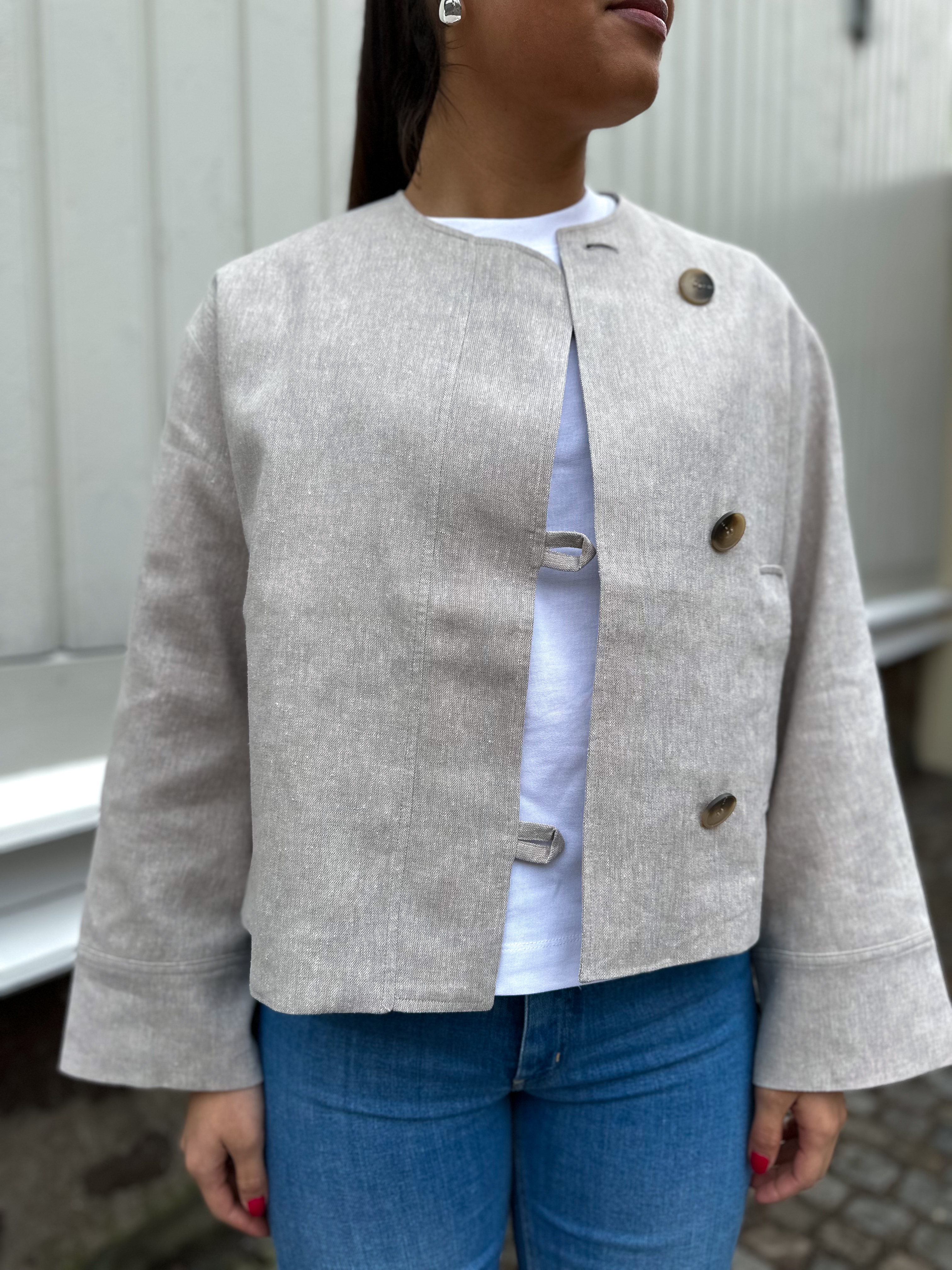 "Victoria Sun Jacket" fra Selected Femme. Denne jakken er i en deilig linblanding, som gjør den anvendelig både innendørs i de kalde dagene - og som en lett overtrekks jakke på våre. Jakken har knaplukning langs fronten, lommer i hver side og en klassisk rund hals.