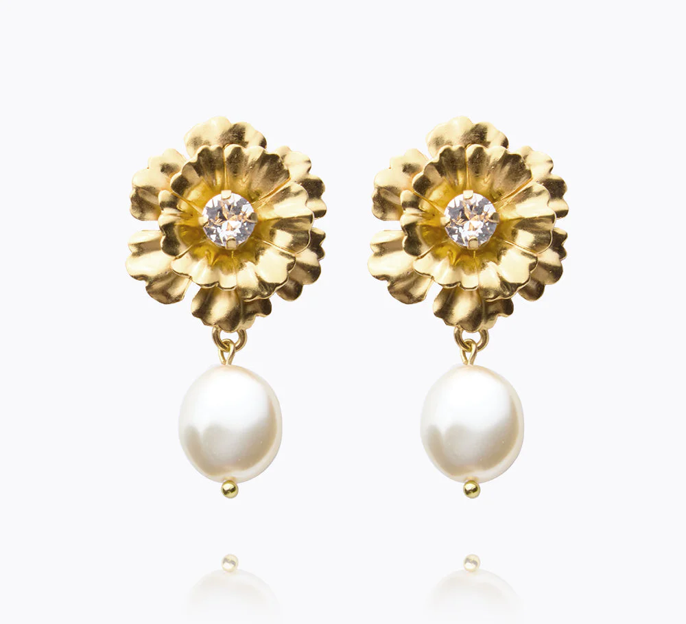 Blossom Pearl Earrings - Gold/Crystal
