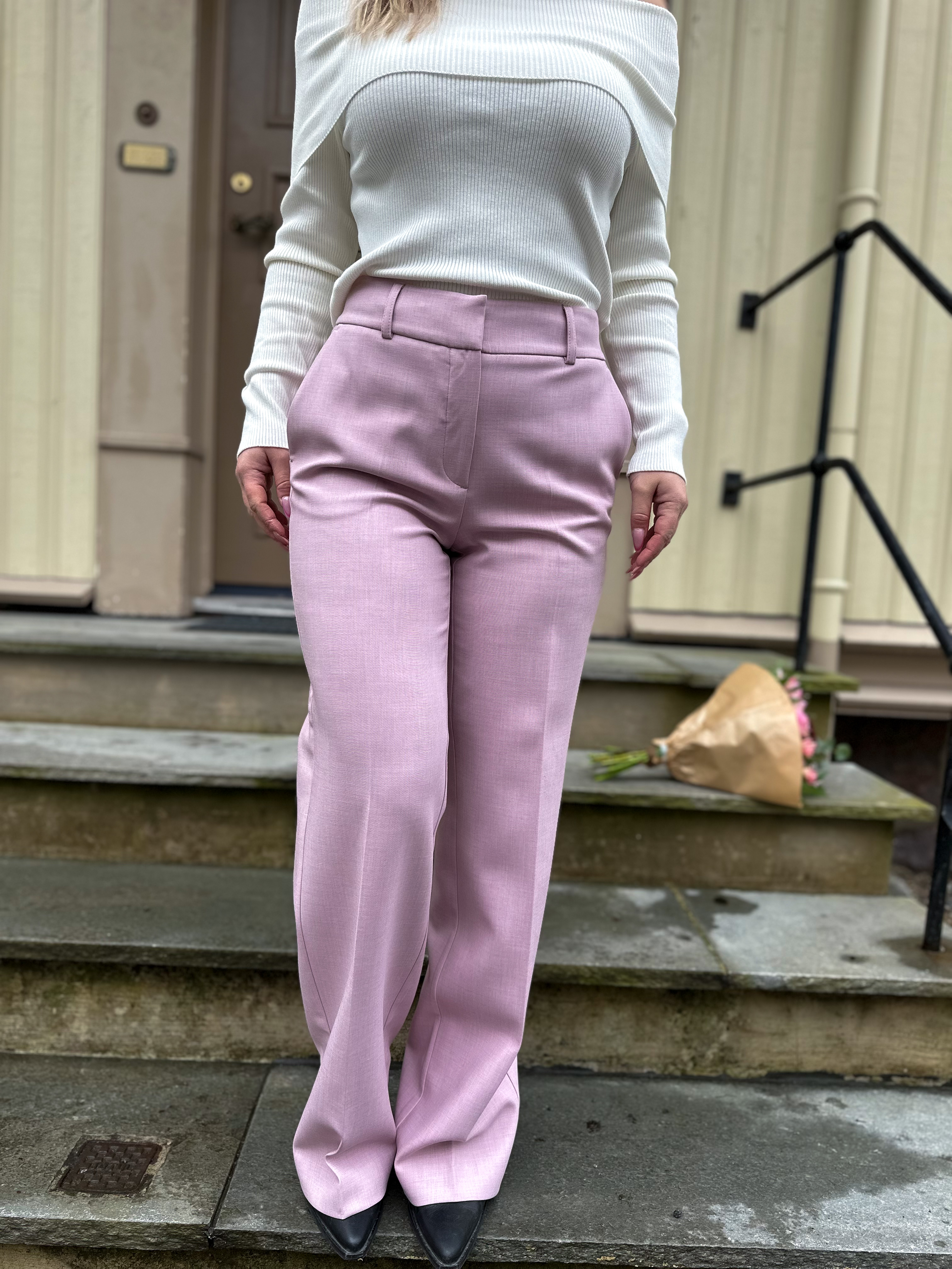"Rita wide pant" fra Selected Femme er en klassisk dressbukse som passer til alt. Kan pyntes med en lekker bluse eller like fint med en strikkegenser. Den sitter over rumpe og lår, mens den er løs i beina. Buksen har to lommer foran og har beltestropper.