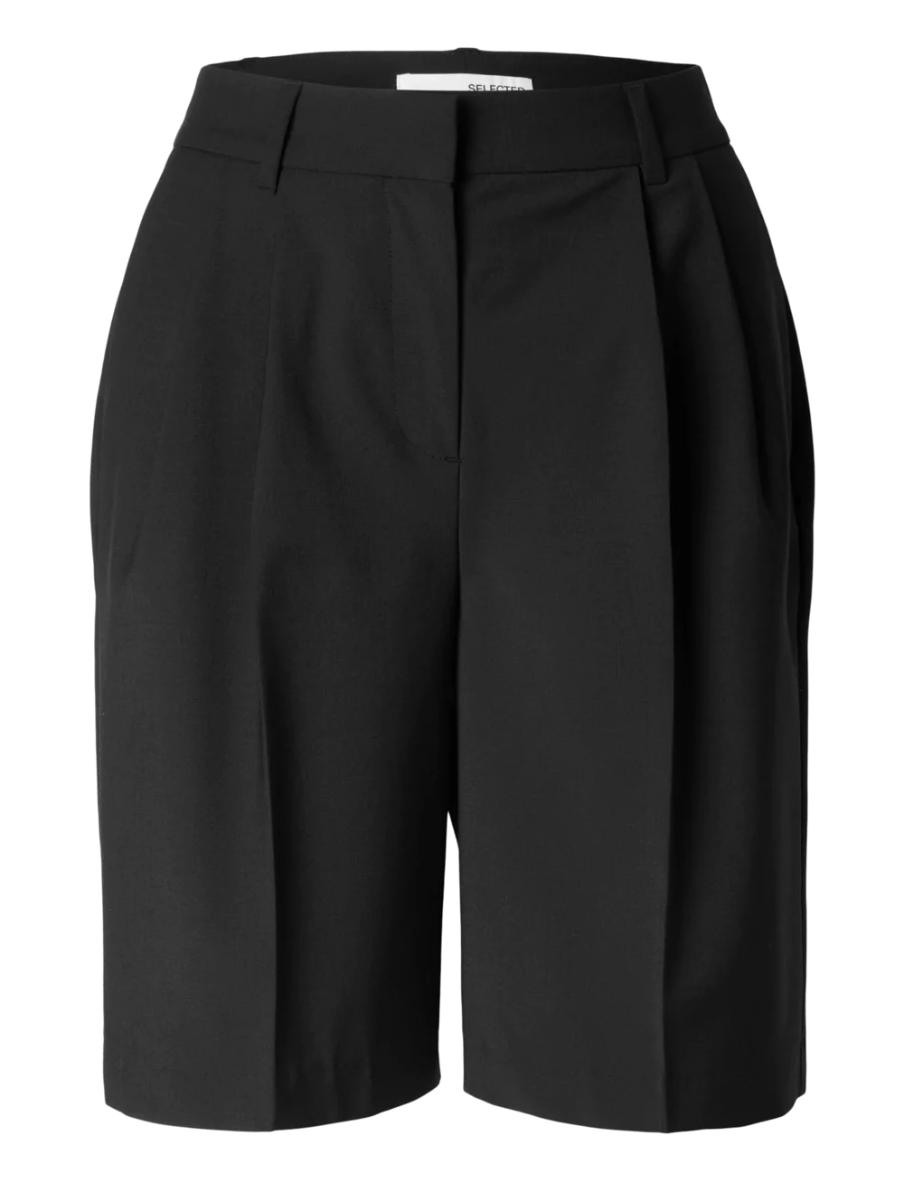 "Abbi Bermuda Shorts" fra Selected Femme. Den har dressbuksefasong med stikklommerlegg i front og beltehemper. Lett og behagelig kvalitet. Style med Abbi Vest for komplett look!