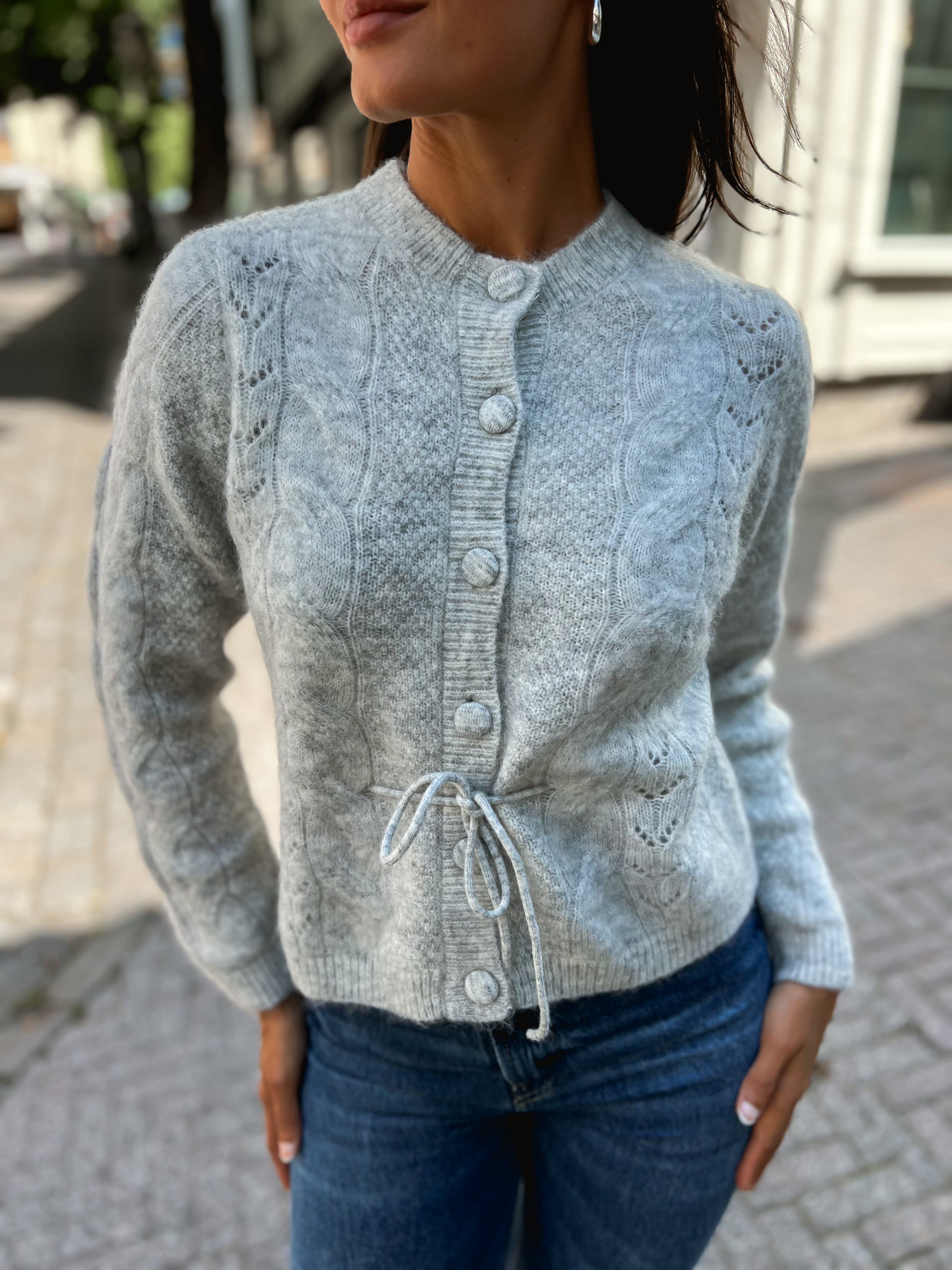 Vera Knit Belt Cardigan - Light Grey Melange