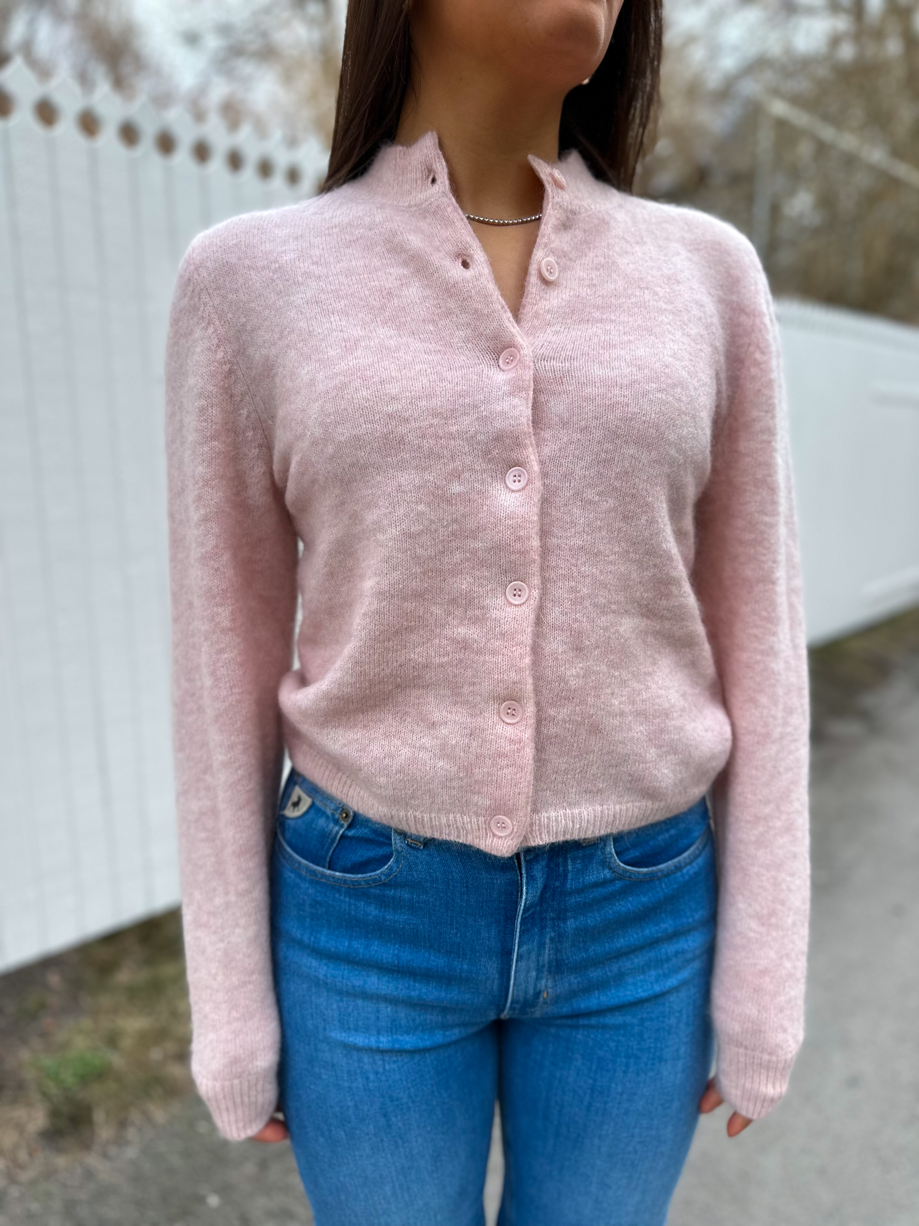 "Debbie Cardigan" fra Gestuz. Denne cardiganen fra Gestuz har en klassisk, men og moderne silhuett. Den høye halsen og knappelukkingen foran gir et sofistikert preg, mens de lange ermene og den avslappede passformen gjør den perfekt for lag-på-lag styling. Bruk den over en enkel t-skjorte og jeans for en avslappet hverdagslook, eller med en kjole og støvletter for en mer pyntet stil.