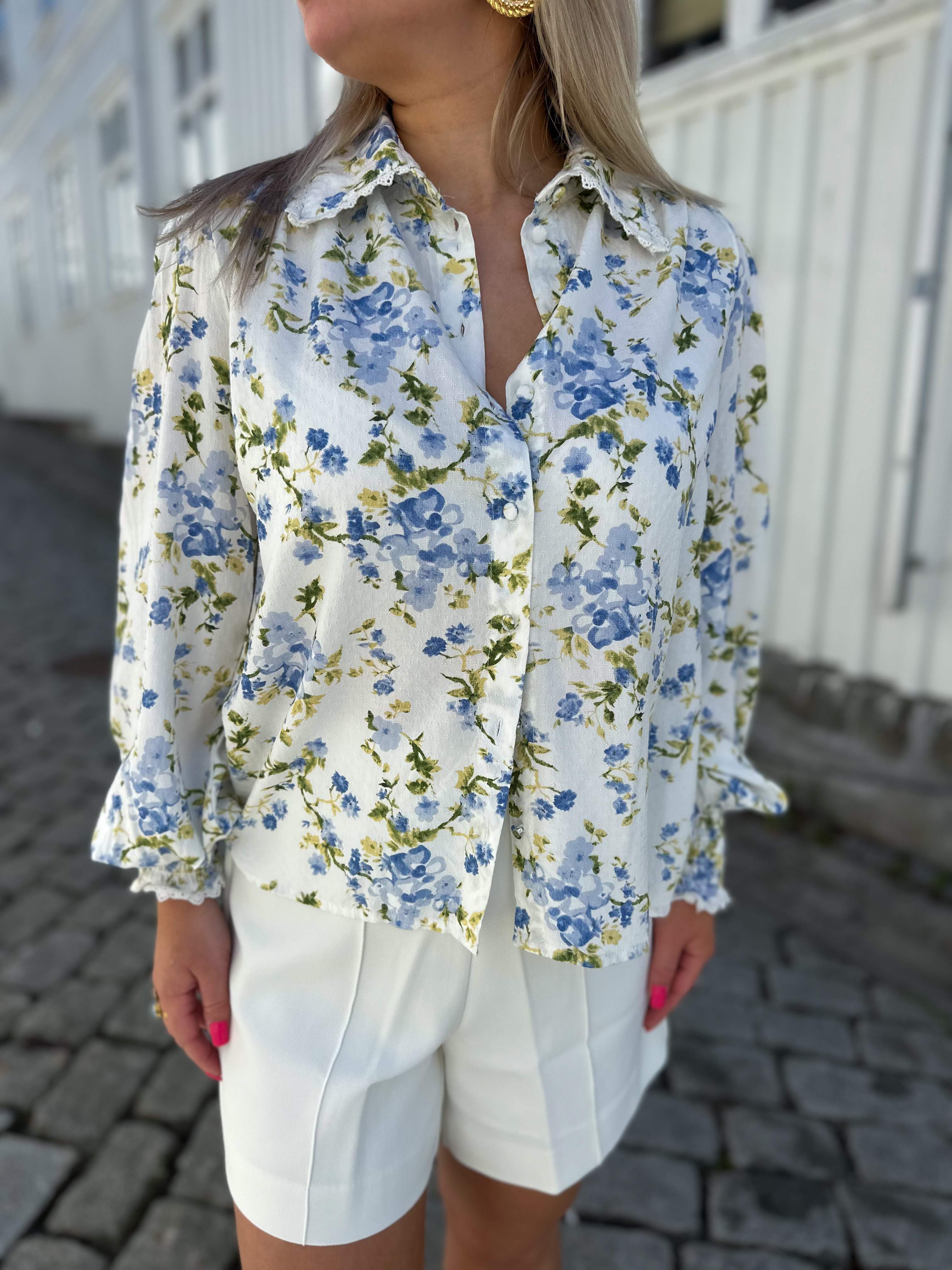 «Tilera Shirt» fra Y.A.S. Søt bluse fra Y.A.S laget i myk og pustende viskose. Yastilera Ls Shirt har krage, knappelukking i front og lange ermer med bred, elastisk mansjett. Blusen har en normal passform, er dekorert med et nydelig blomsterprint og har søte, broderte detaljer.