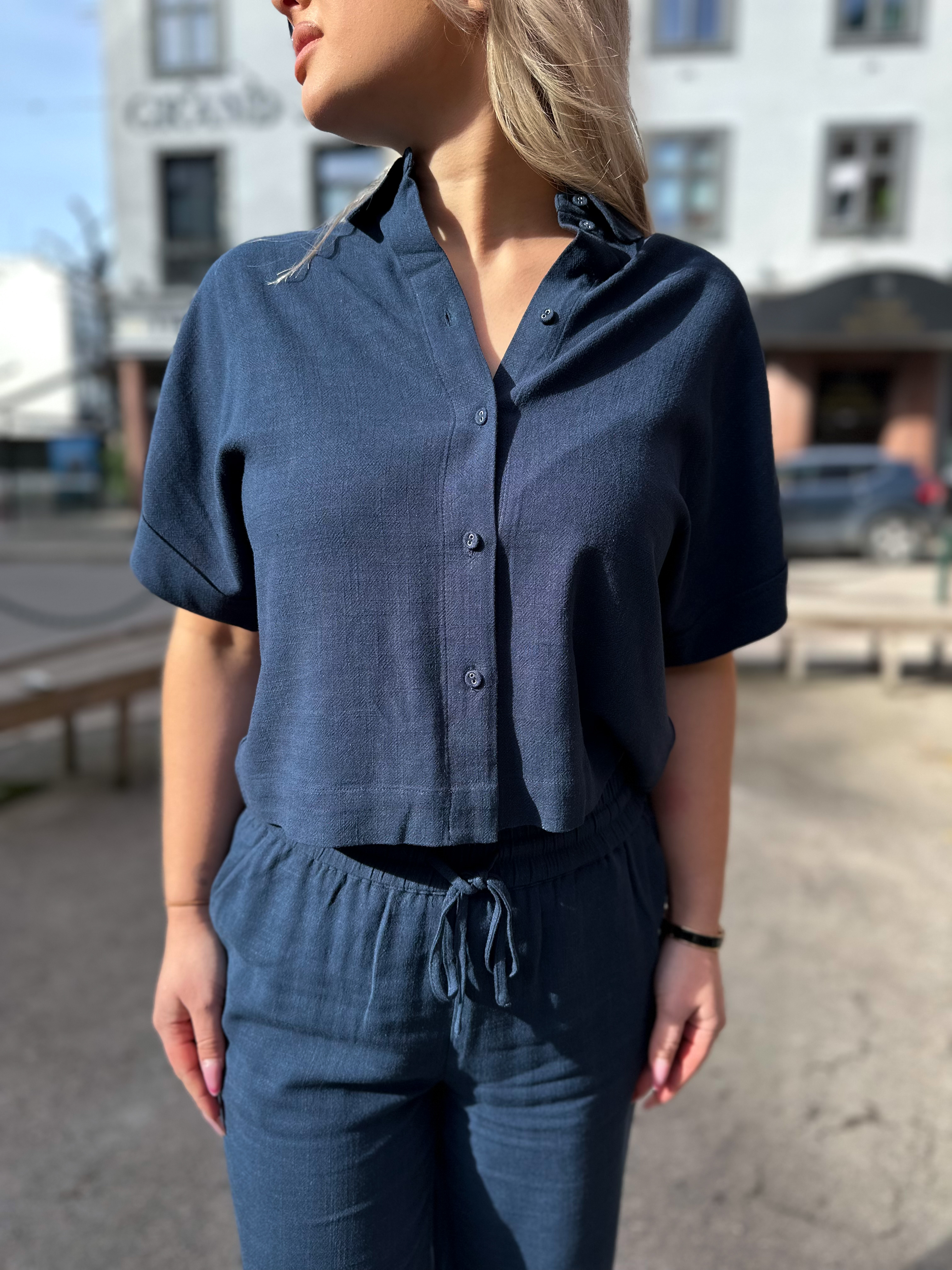 "Viva Cropped Sun Shirt" fra Selected Femme-skjorten er et stilig og allsidig plagg som kan styles opp eller ned. Den har et klassisk knappeslukningsdesign med en avkortet silhuett. Skjorten er laget av et mykt og komfortabelt stoff som er perfekt for hverdagsbruk.