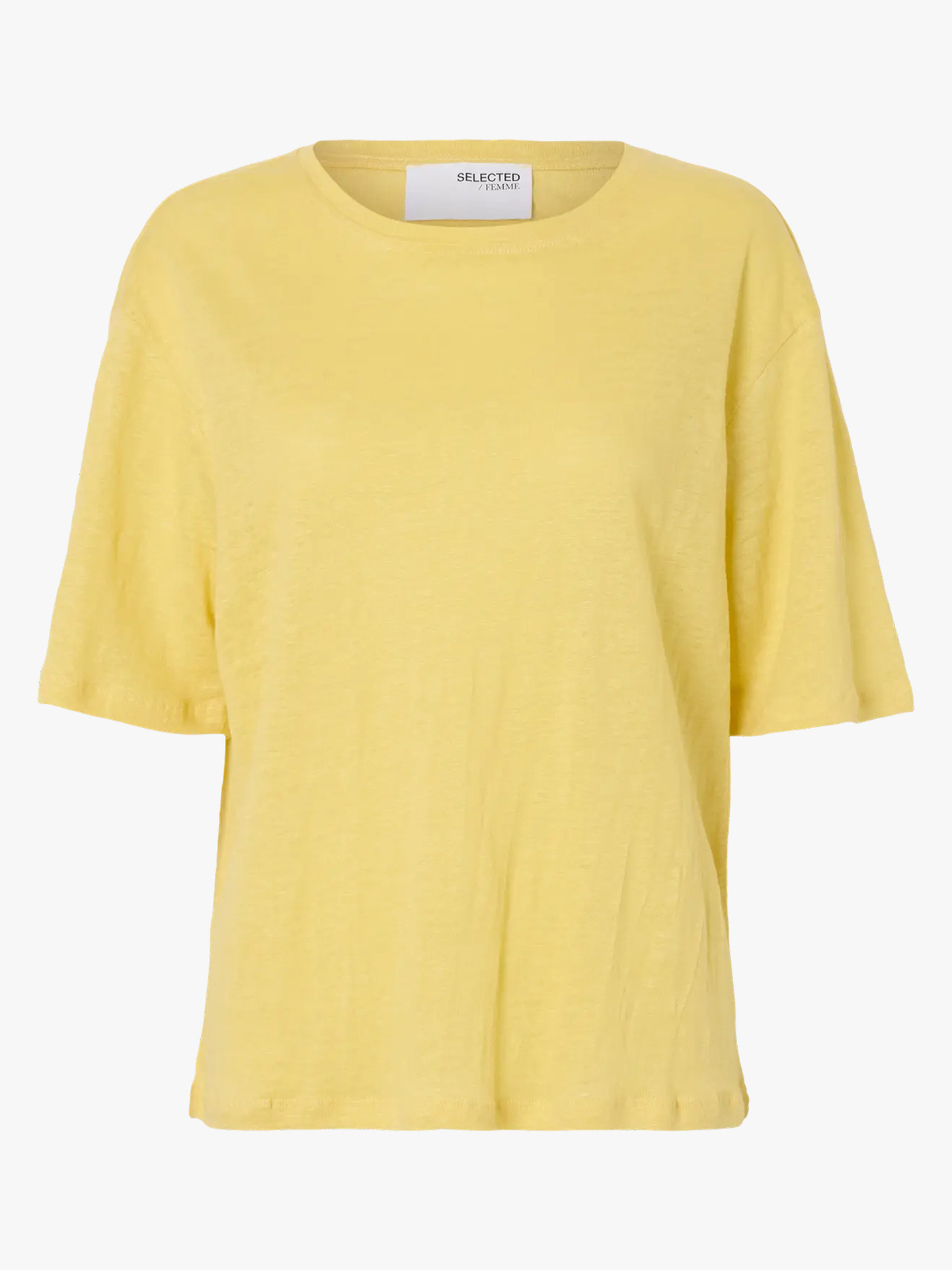 «Vilja linen tee» fra Selected Femme er en klassisk T-skjorte i 100% lin.