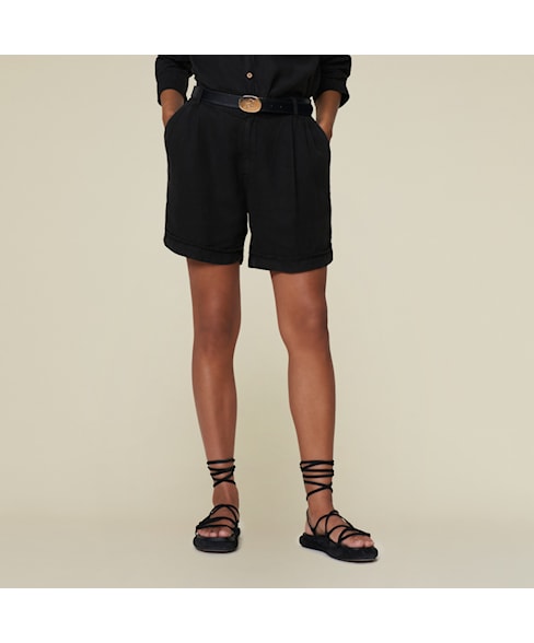 "Saya fra Lois" - en bermuda shorts med skreddersydde plisseringer og chinos-lommer. Med knapp og glidelås i front. Myk og behagelig lin- og bomullskvalitet. Middels høyde på livet og avslappet passform.
