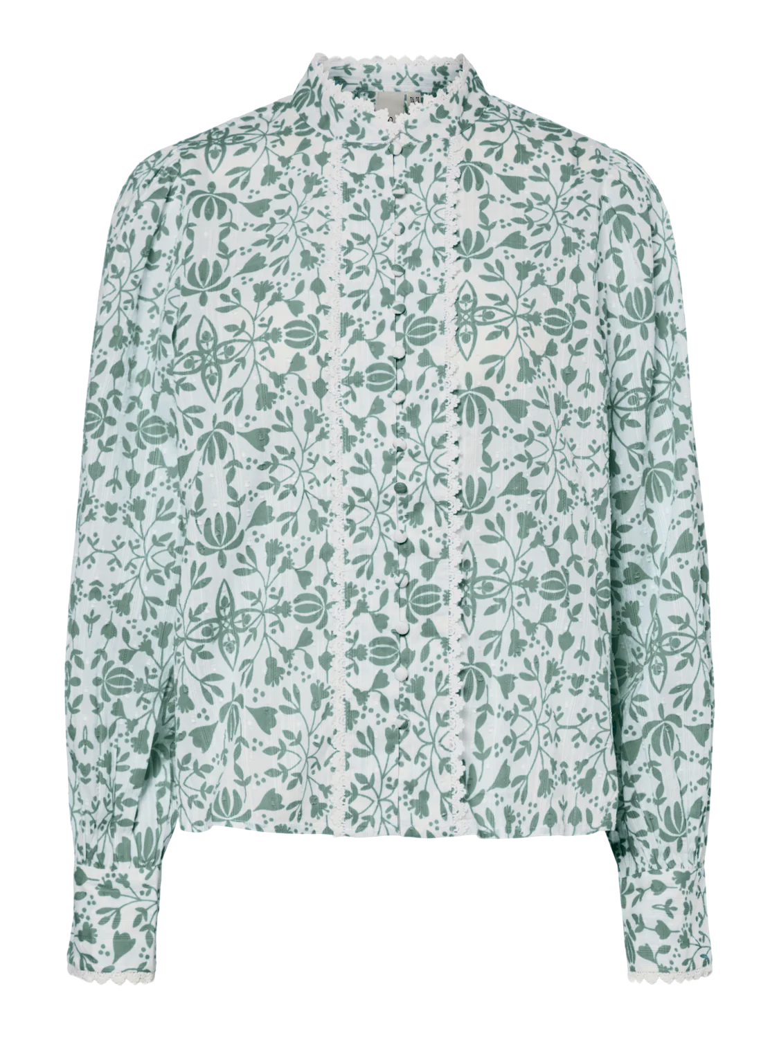 "Vips Shirt" fra YAS. Super fin skjorte med nydelig print. skjorten har lange ermer og vanlig lengde. Skjorten har broderier ved kragen og langs knapperemsen.