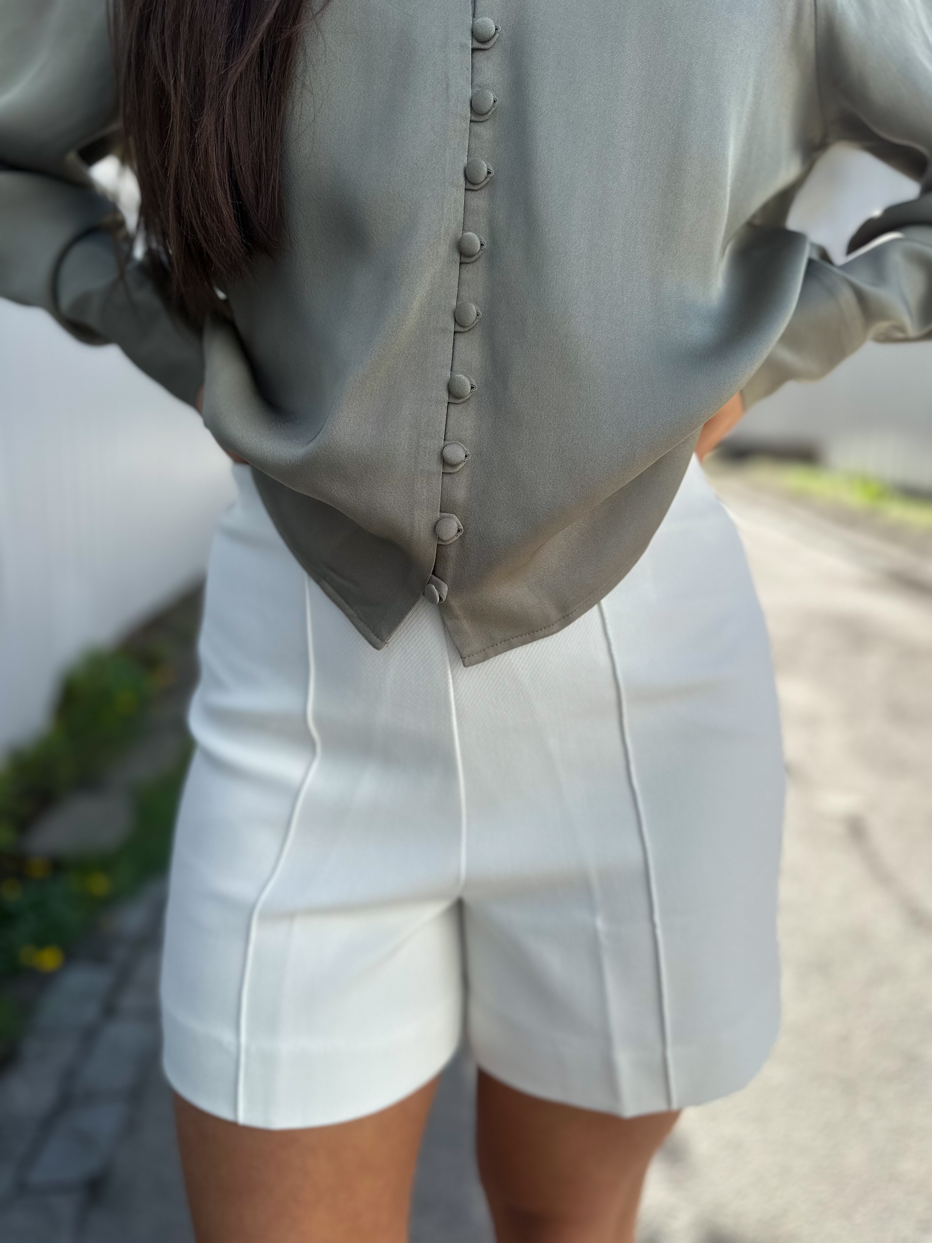 «Ilea New Shorts» fra Yas er en flott shorts i hvit farge med en supergod passform. Shortsen har høyt liv, perfekt lengde og en løstsittende passform. Den har lekre leggdetaljer foran og bak som gir et elegant uttrykk. Kombiner med en enkel t-skjorte eller med en av vårens fine bluser.