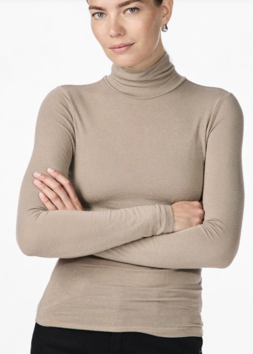 " Woola knit pullover " fra YAS er en klassisk pologenser i deilig mykt kvalitet. Den har høy hals og lang erm. Normal i størrelsen. Fargen heter " Whisper pink "