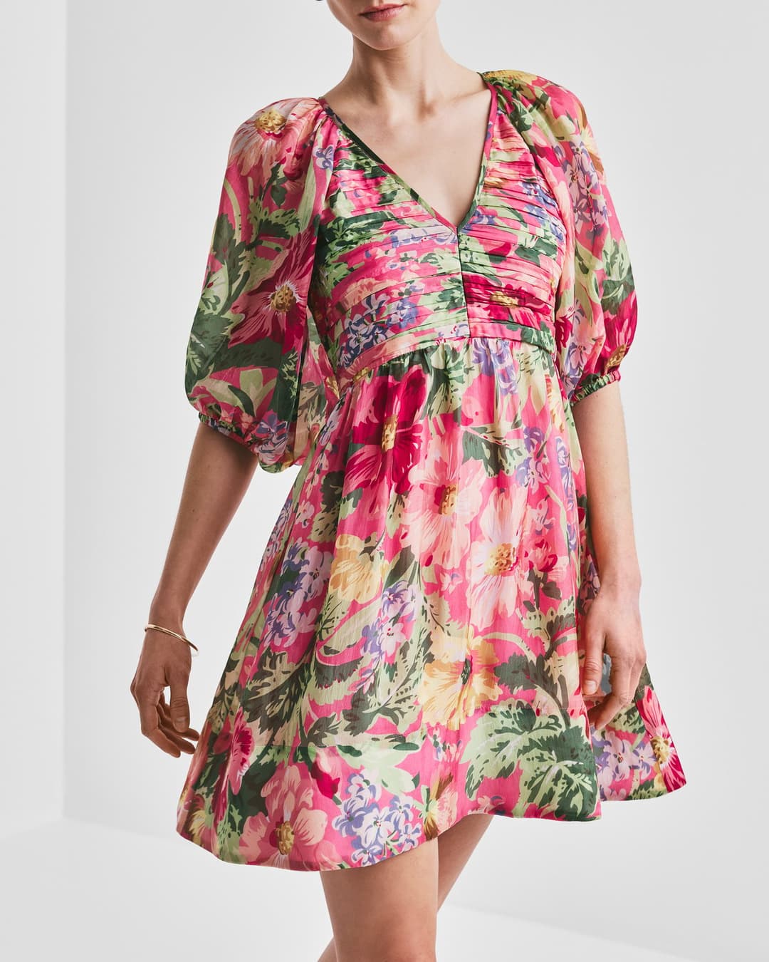 Cupro Mini Dress - Pink Blossoms