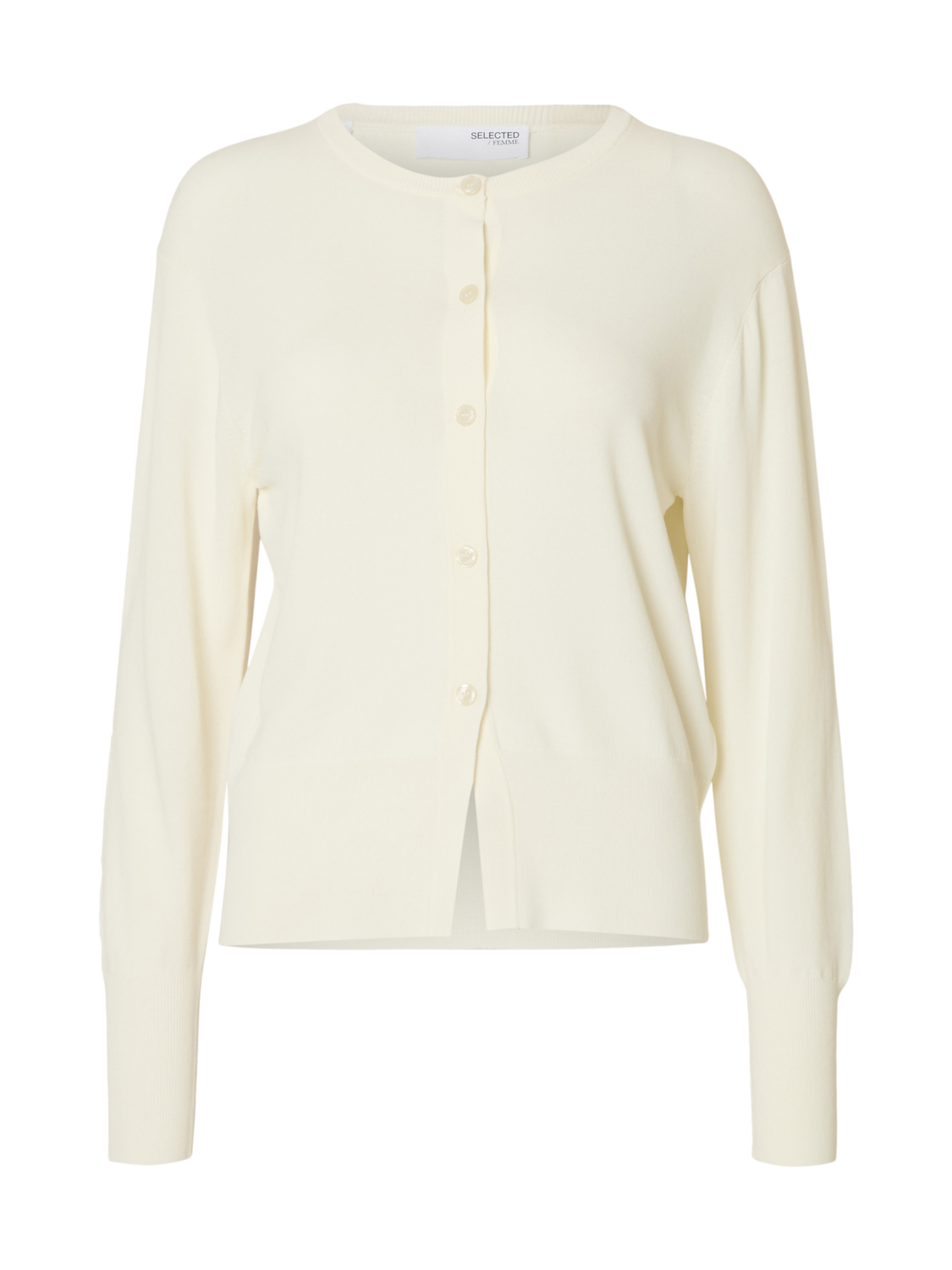 "Cato Knit Cardigan" fra Selected Femme. Myk og behagelig cardigan i en viskoseblanding. Den har rund hals, lange ermer med droppede skuldre, høye mansjetter og knappelukking foran. Regular fit – perfekt for både hverdag og lag-på-lag.