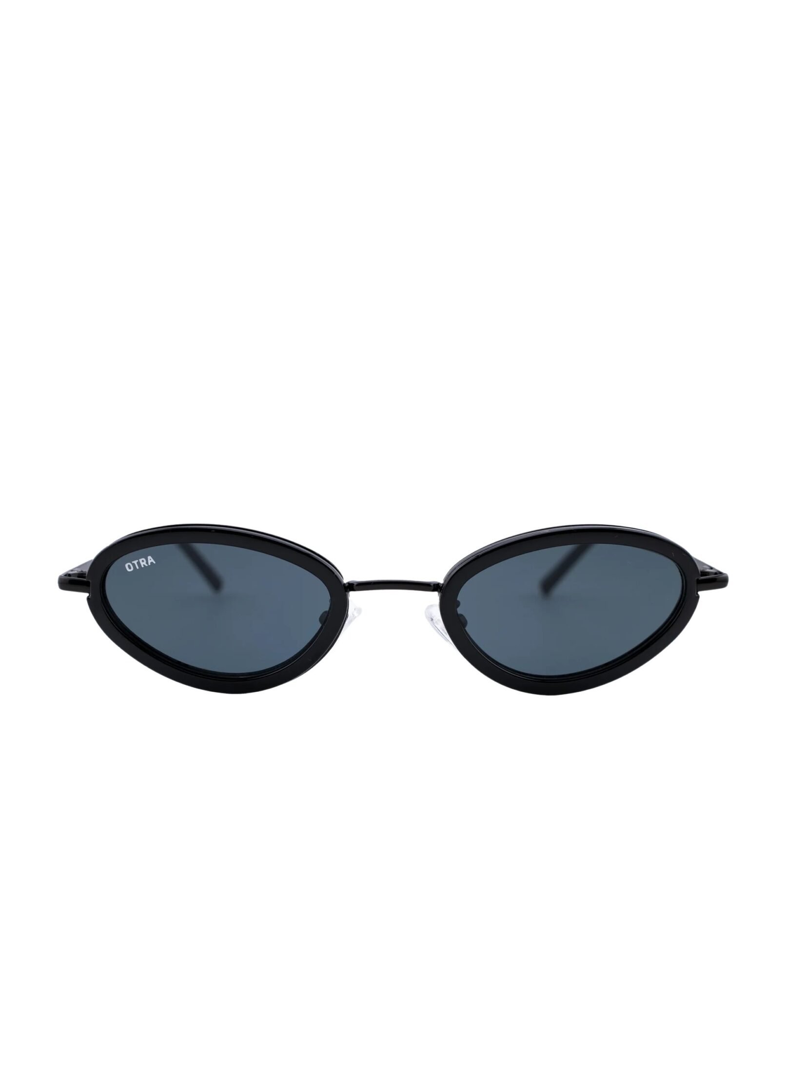 Solbriller til dame fra Otra Eyewear. Smale runde solbriller med cateye-form, sort ramme og smoke glass. Lette og komfortable solbriller, det perfekte tillegget til antrekket.