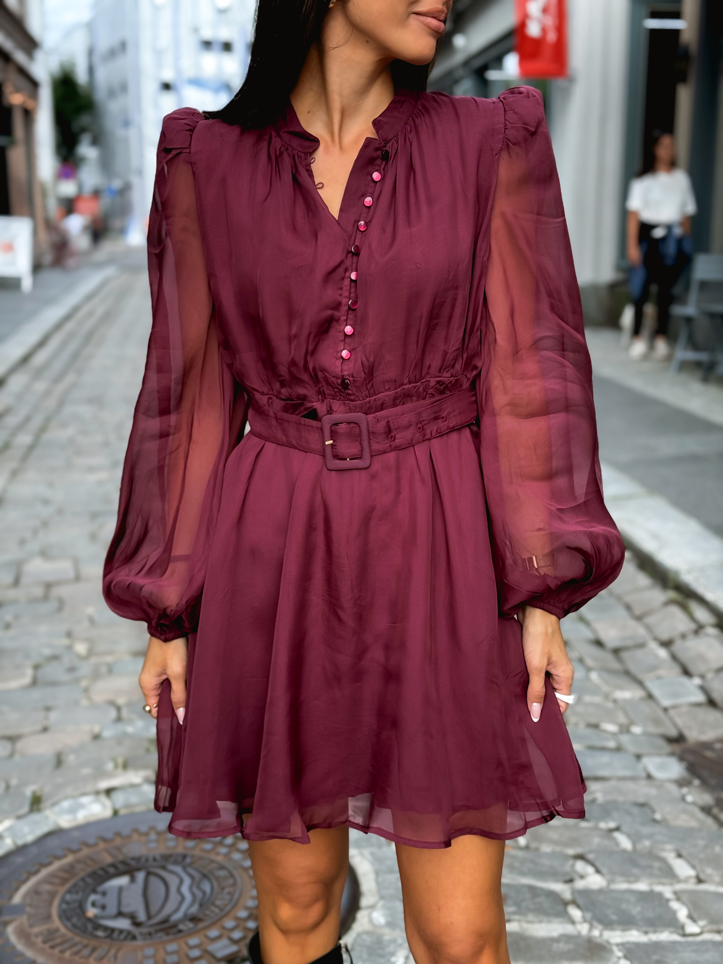 Organza Mini Dress - Burgundy