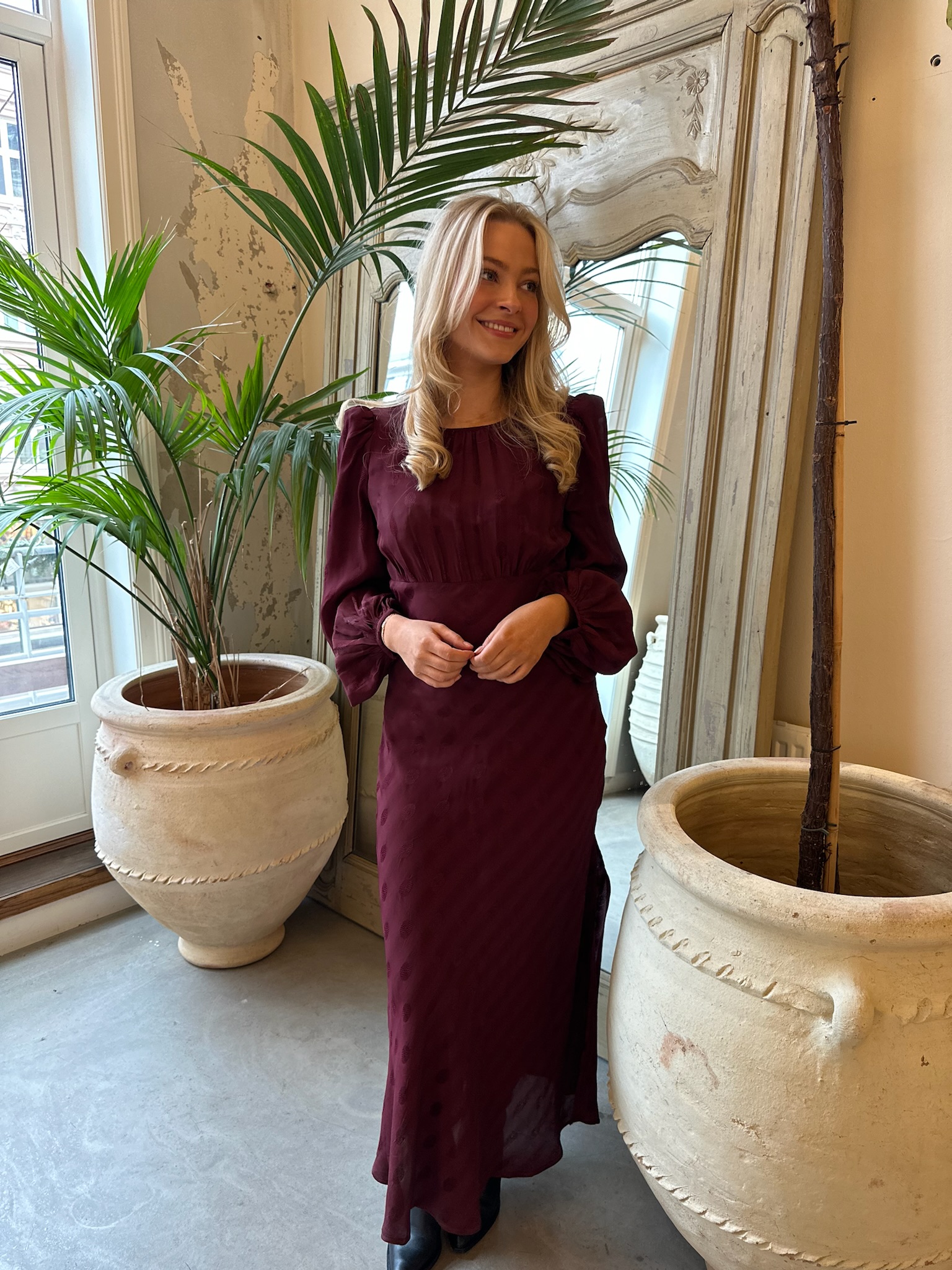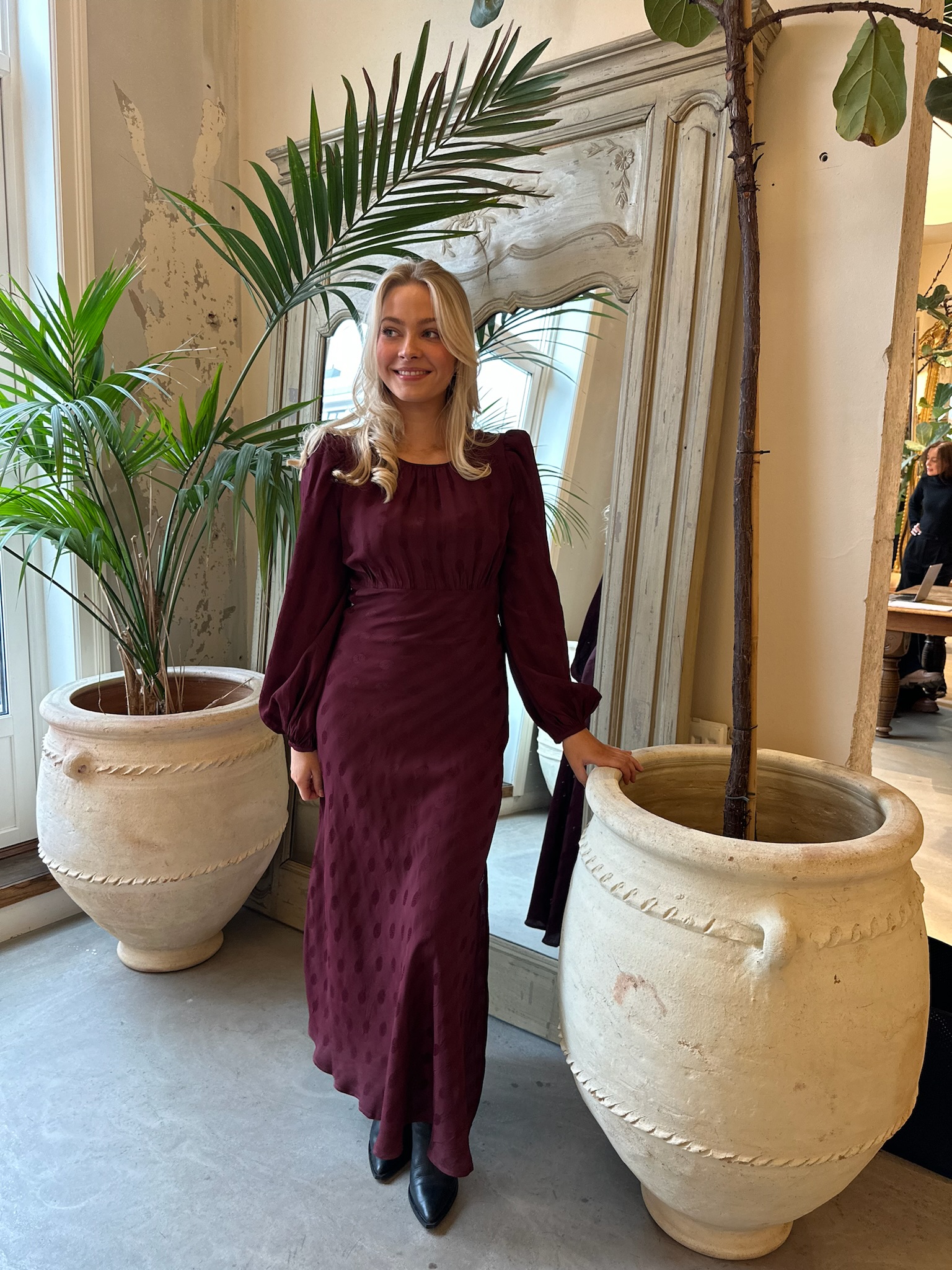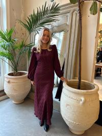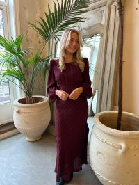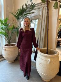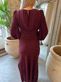 "Viscose Midi Dress" fra byTiMo. Lekker midi kjole med tettsittende skjørt. Kjolen har feminin rund hals og lange luftige ermer med stramme mansjetter. Kjolen har tettsittende midje og løsere overdel.