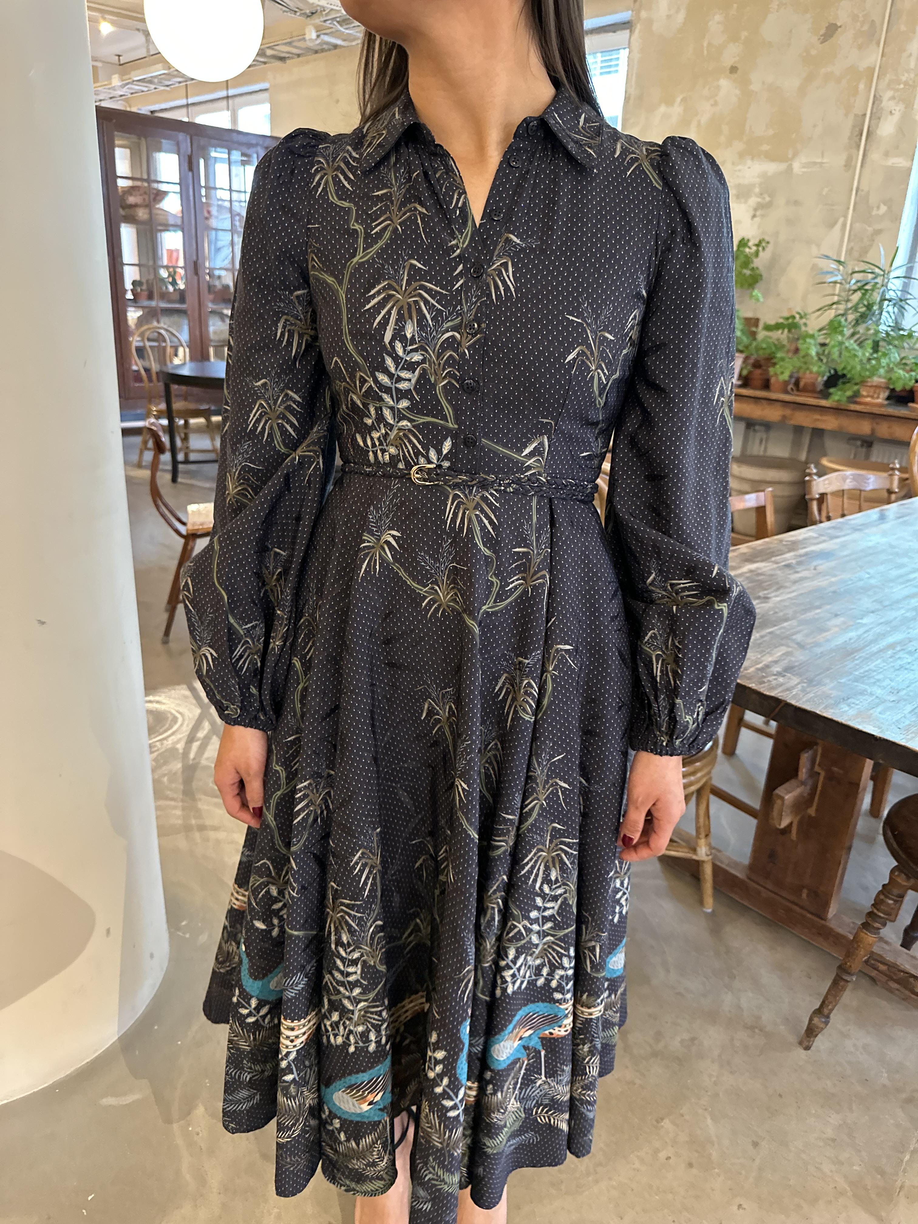 "Jacquard Midi Dress» fra byTiMo, kjolen har en midilengde, tilpasset midje, a-formet skjørt og ballongermer. Kjolen har rund hals og vakre rynkede detaljer. Den kommer med et løst, matchende belte.