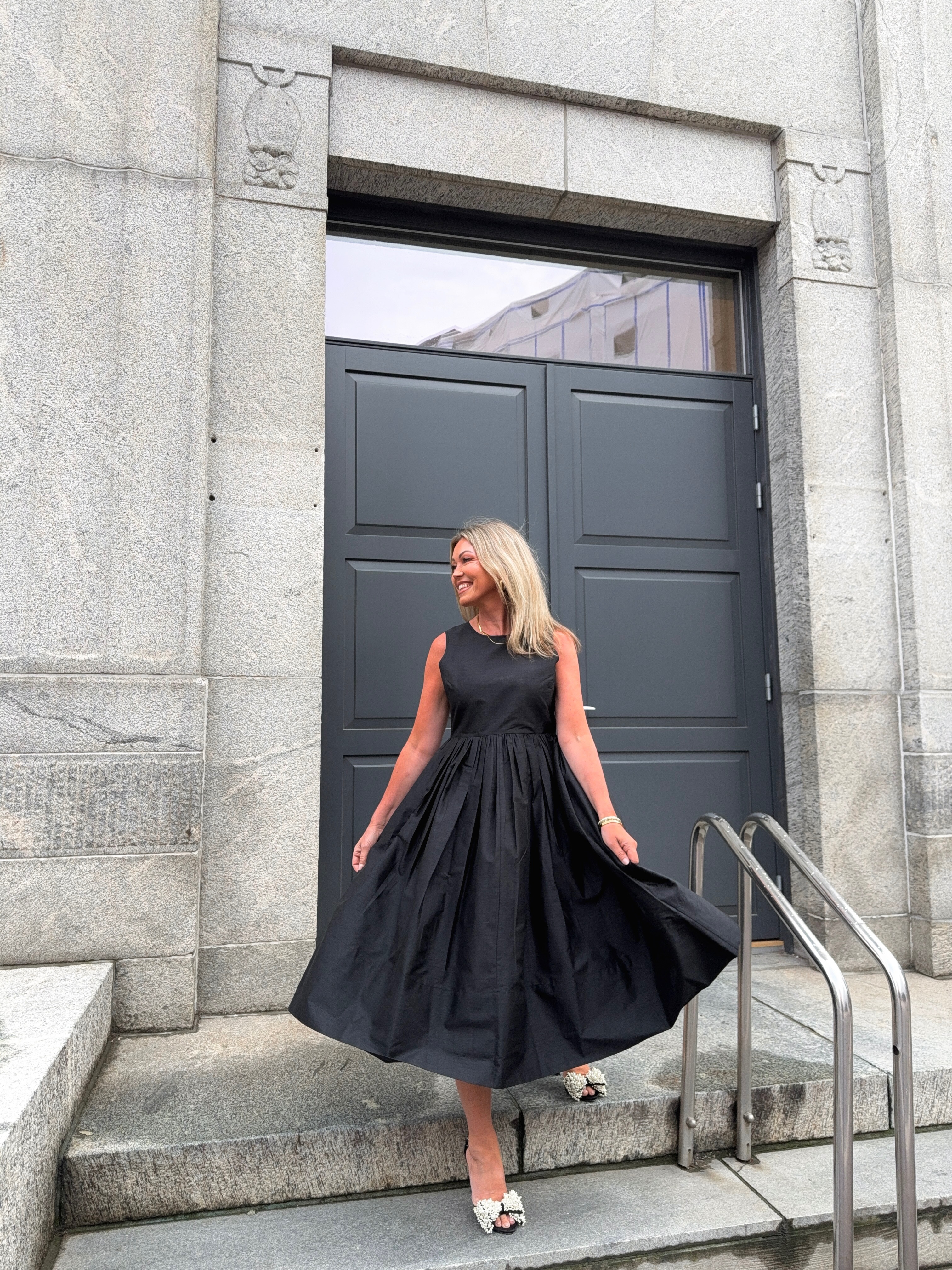 "Taffeta Midi Dress" fra byTiMo. Super fin kjole med tettsittende overdel og a-formet flowy skjørt, i midi lengde.