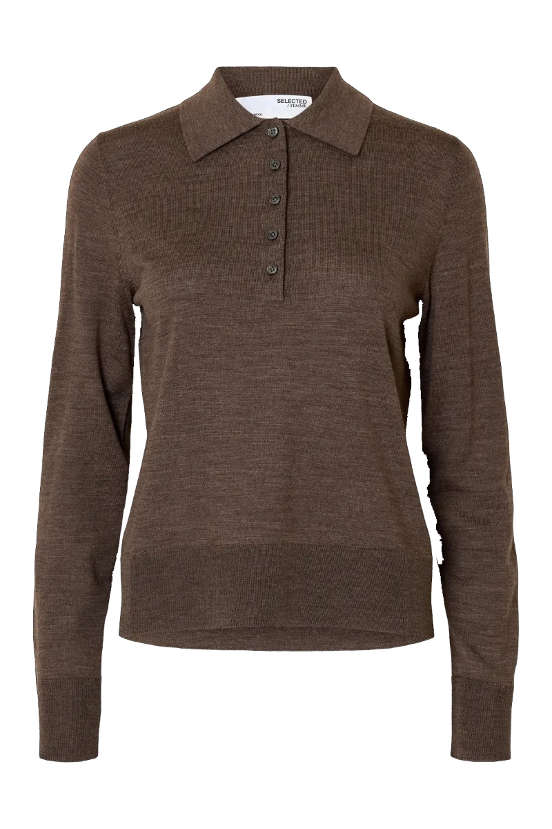 «Thea Knit Merino Collar Neck» fra Selected Femme er en sofistikert og komfortabel strikkegenser laget i myk merinoull. Den har en klassisk polo-hals som gir et stilrent uttrykk, og lange ermer med ribbestrikkede mansjetter som gir et stramt og moderne preg. Genseren har en knappestolpe i front som gjør det enkelt å justere passformen.