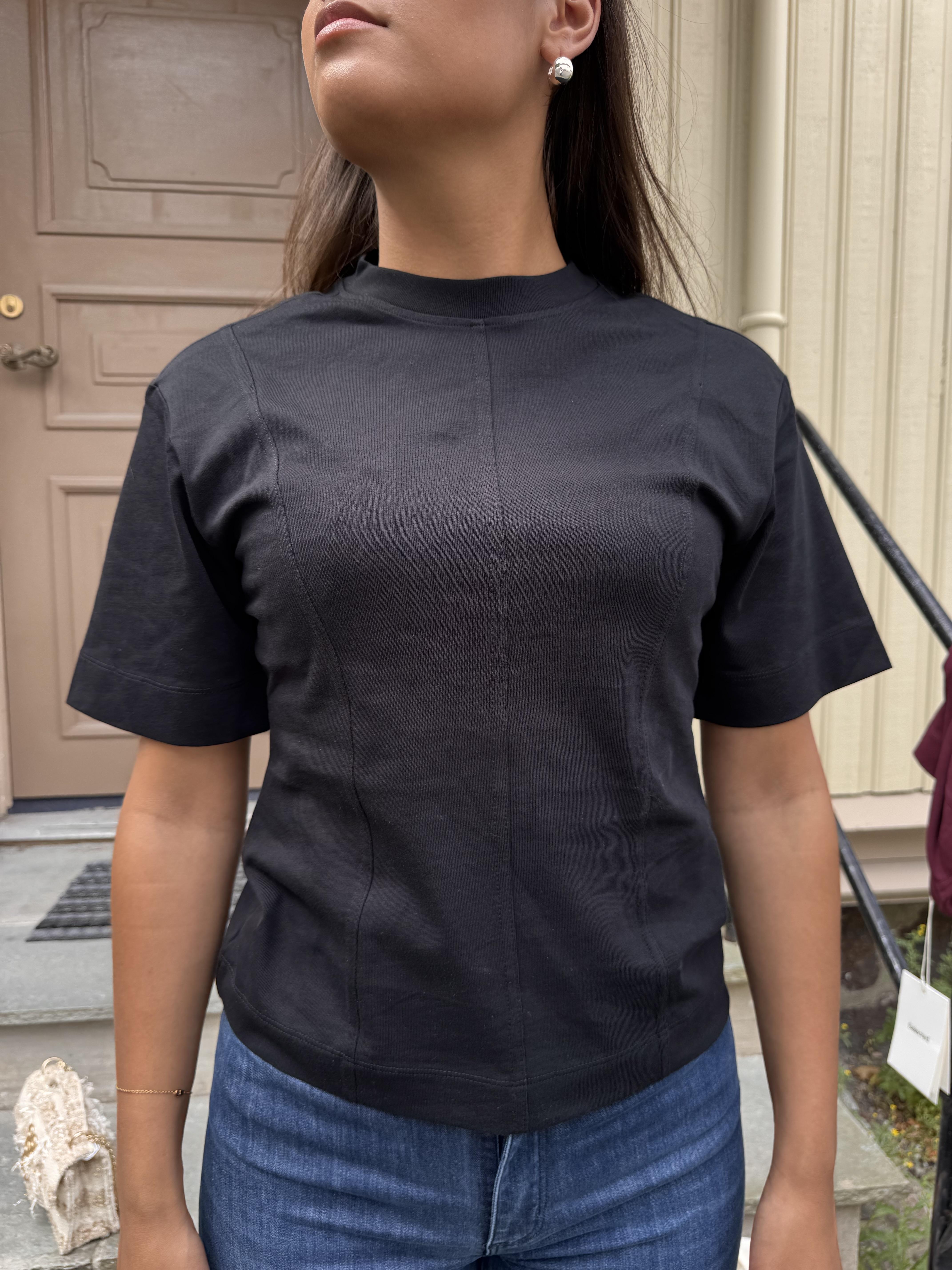 "Mesa Top" fra Selected Femme. Anvendelig topp i ett tykkere bomull stoff. Toppen har rund hals, skulderputer og en definert og innsvinget midje.