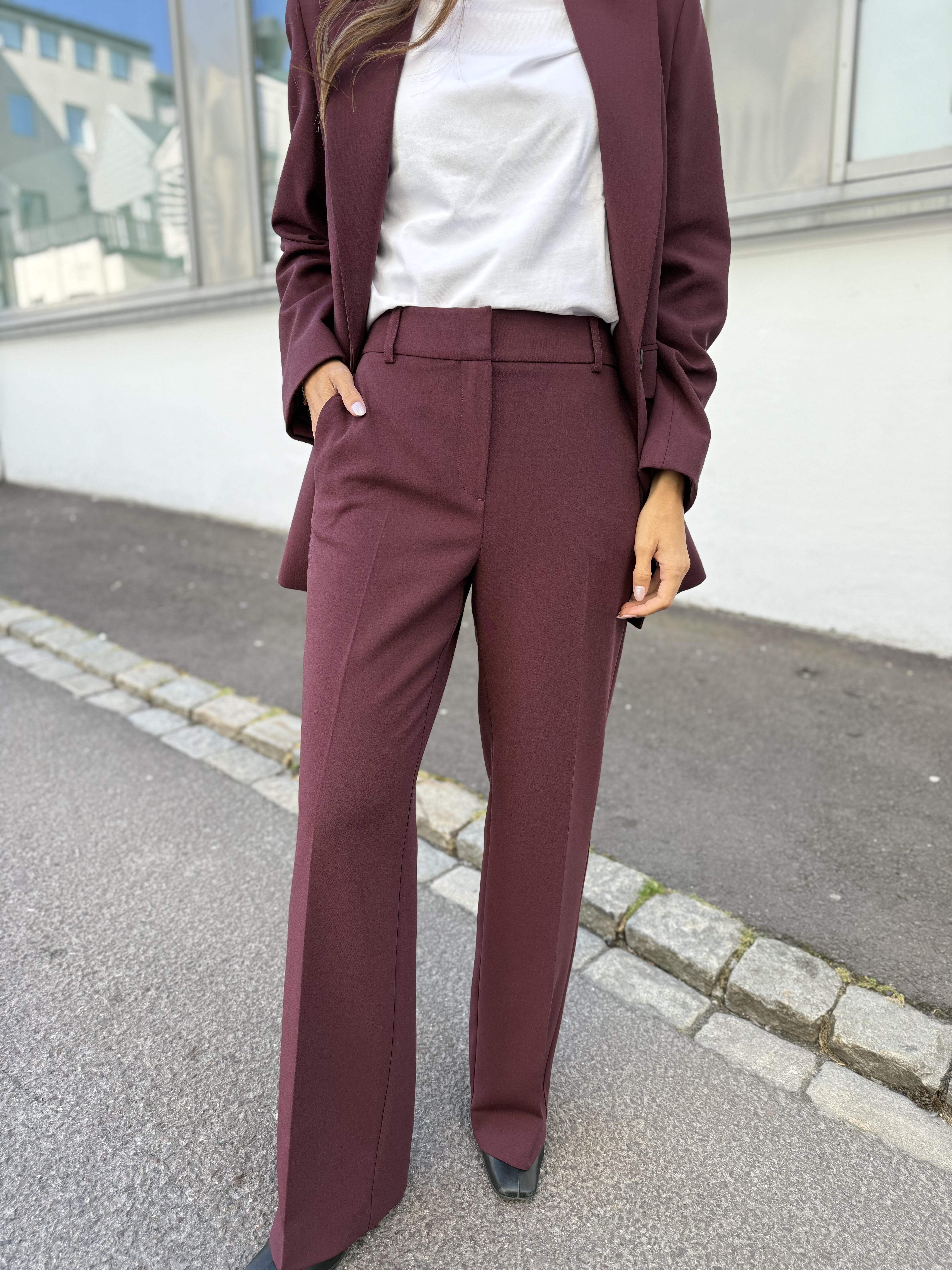 "Rita wide pant" fra Selected Femme er en klassisk dressbukse som passer til alt. Kan pyntes med en lekker bluse eller like fint med en strikkegenser. Den sitter over rumpe og lår, mens den er løs i beina. Buksen har to lommer foran og har beltestropper.